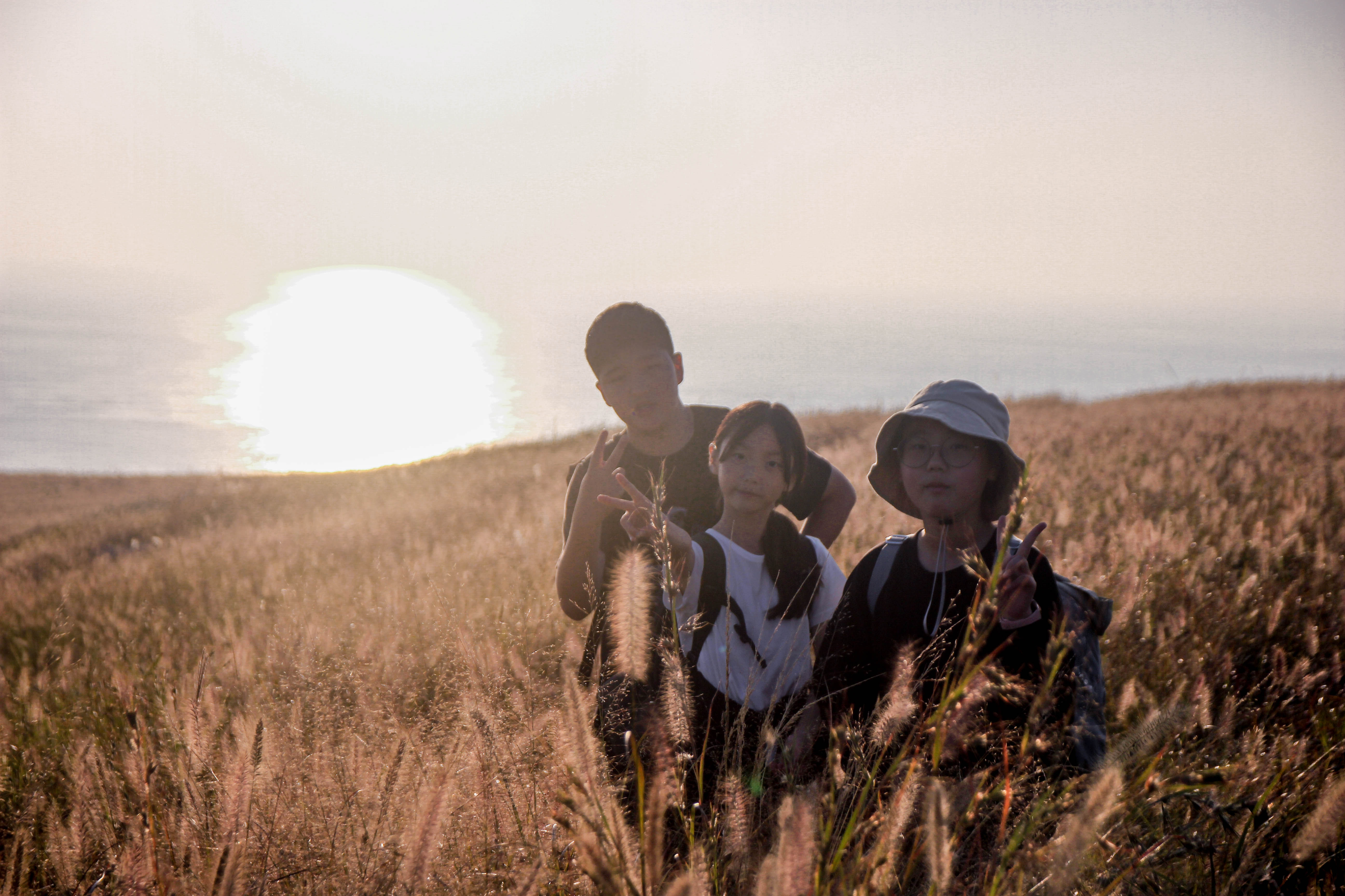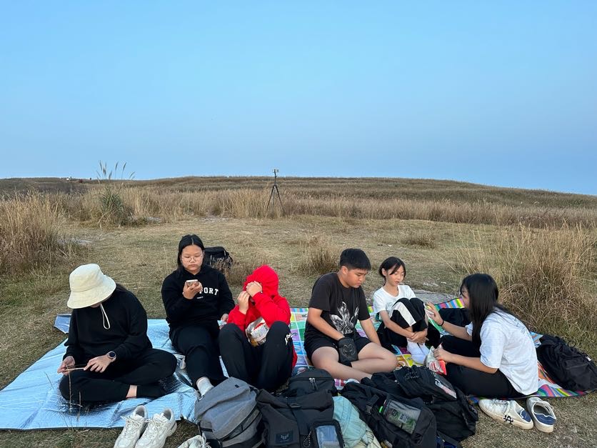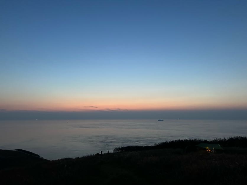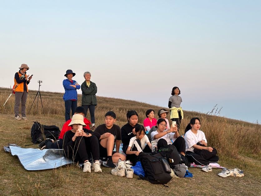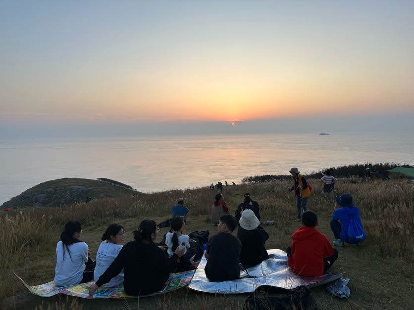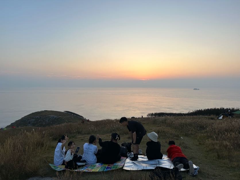 돗자리에 앉아 간식을 먹으며 일몰을 기다렸습니다.