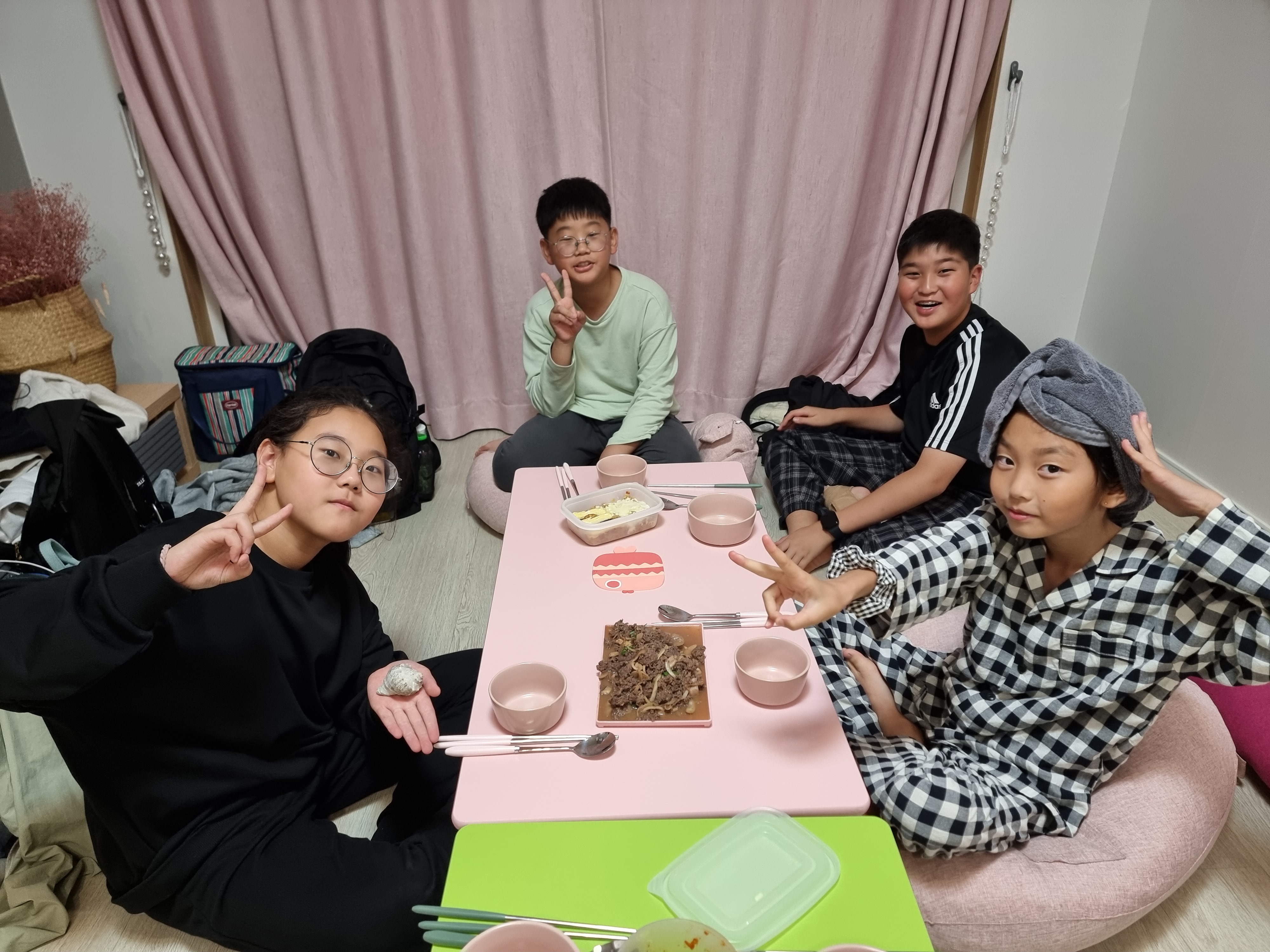 상을 닦고 정리하는 것까지 아이들이 잘했습니다.