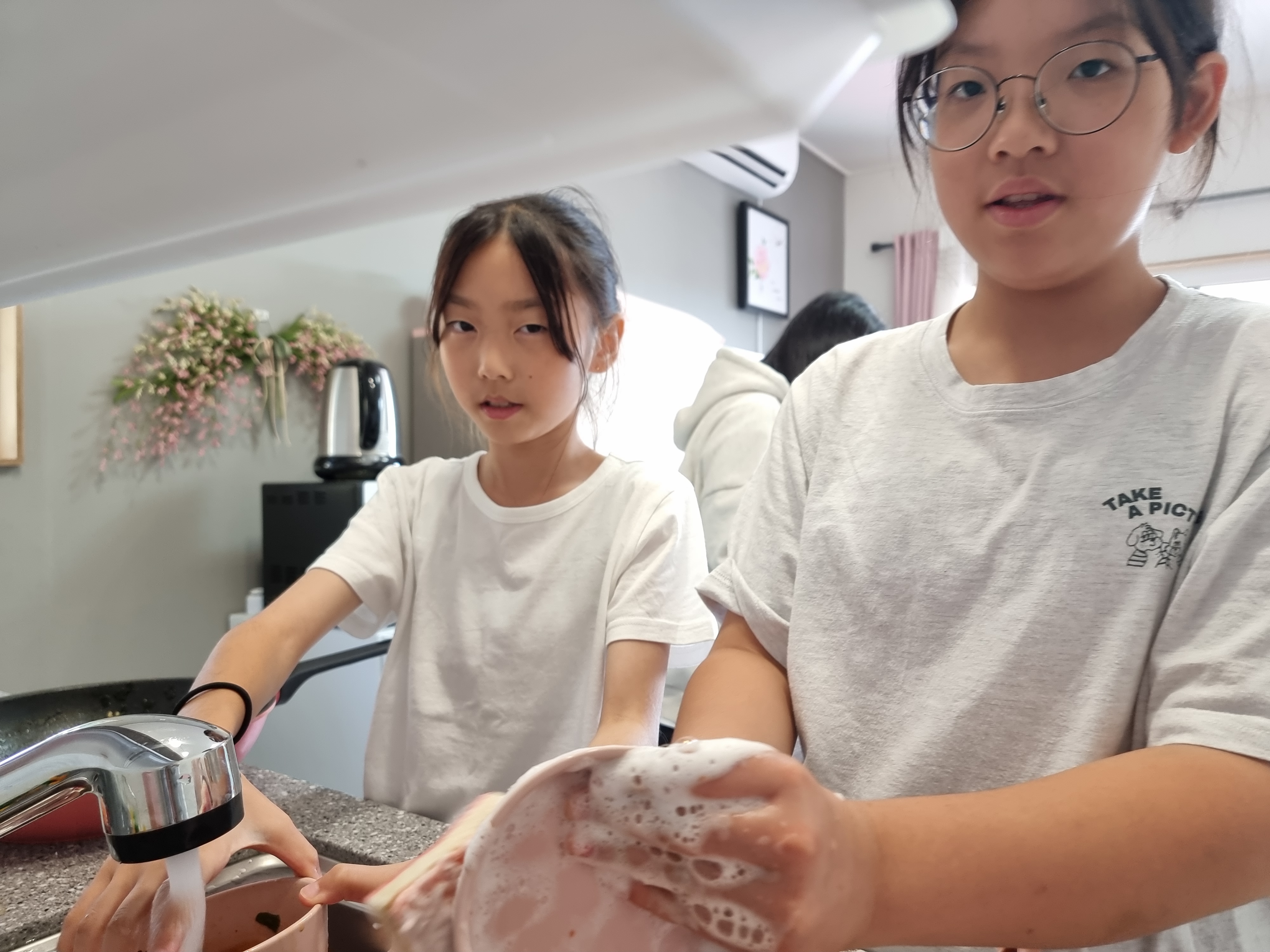 설거지도 서로 하고 싶어했습니다.