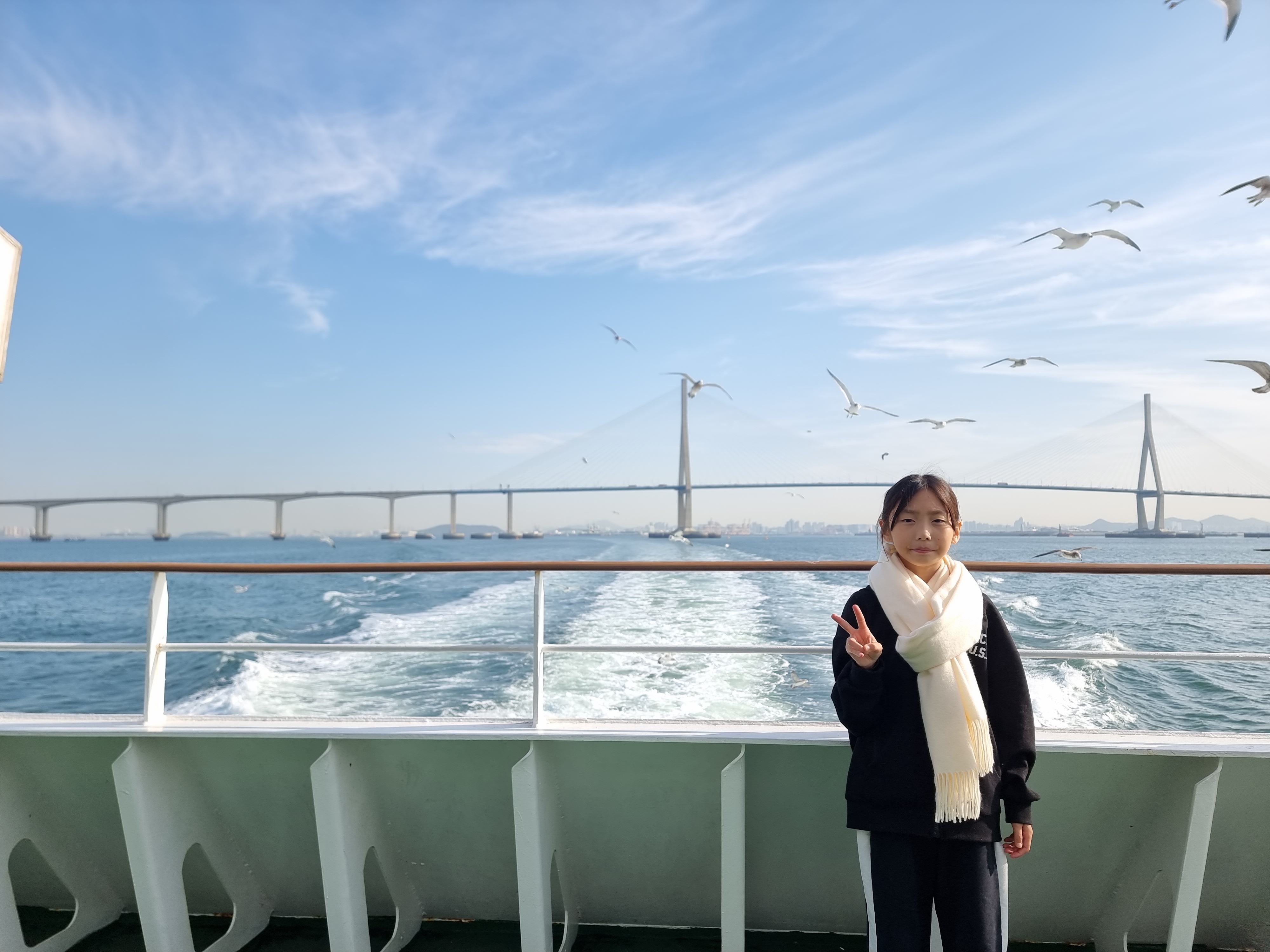 배를 타면 빼놓을 수 없는 건 갈매기에 새우깡을 주는 겁니다.