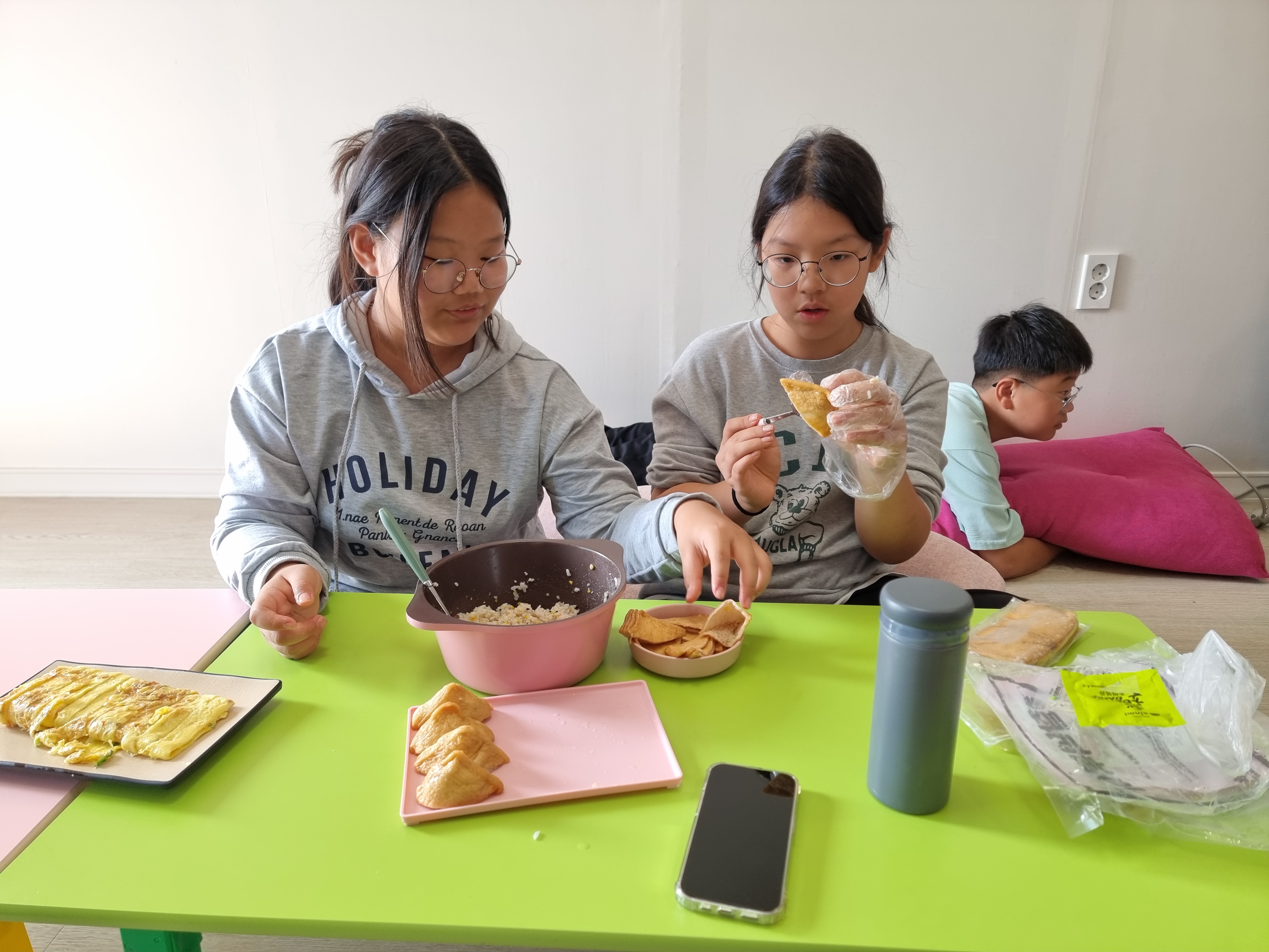 마지막 식사는 떡볶이와 유부초밥입니다.