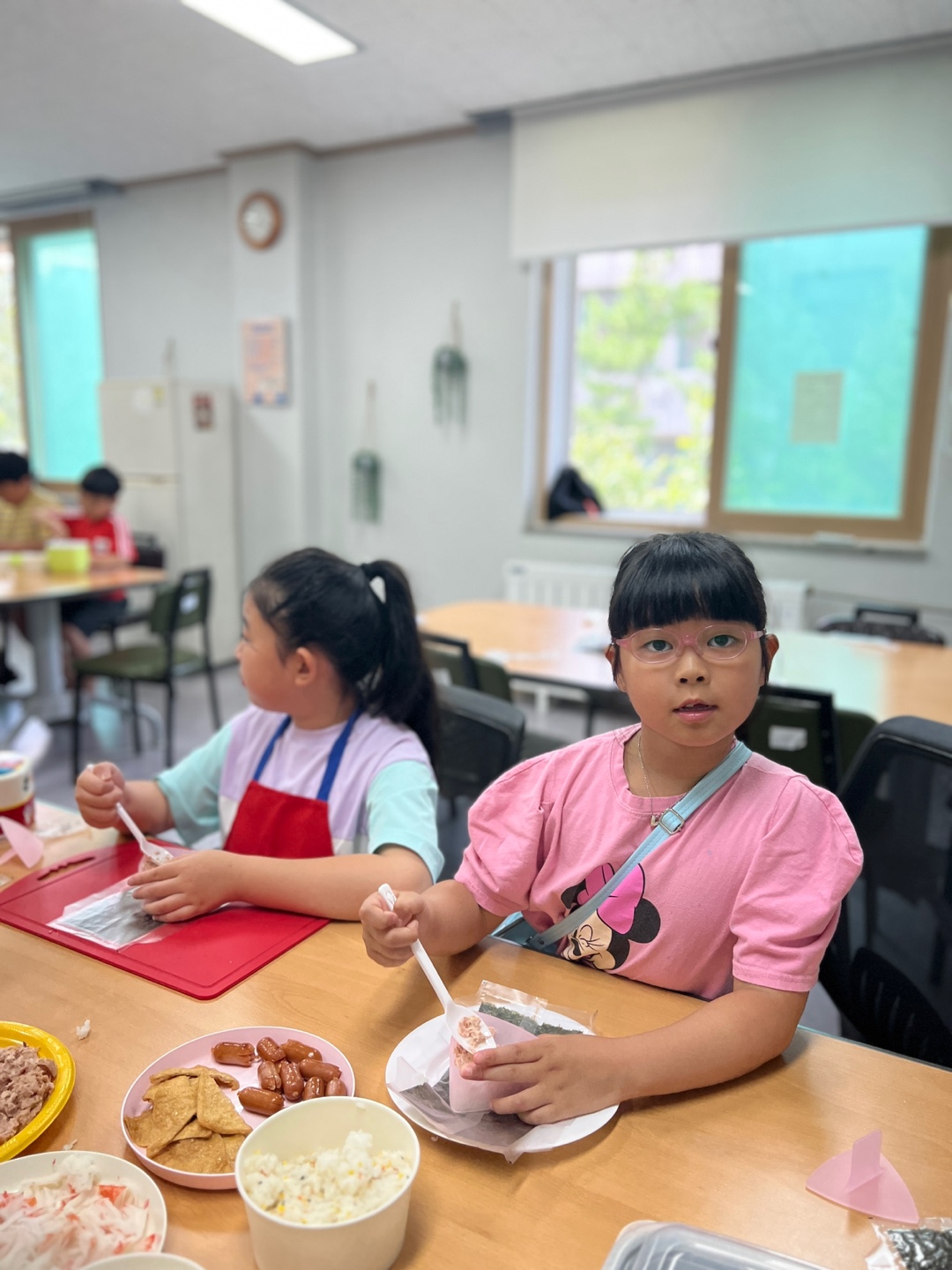게다가 아이들이 가장 좋아하는 소세지도 넣어 삼각김밥 만들 수 있었습니다.