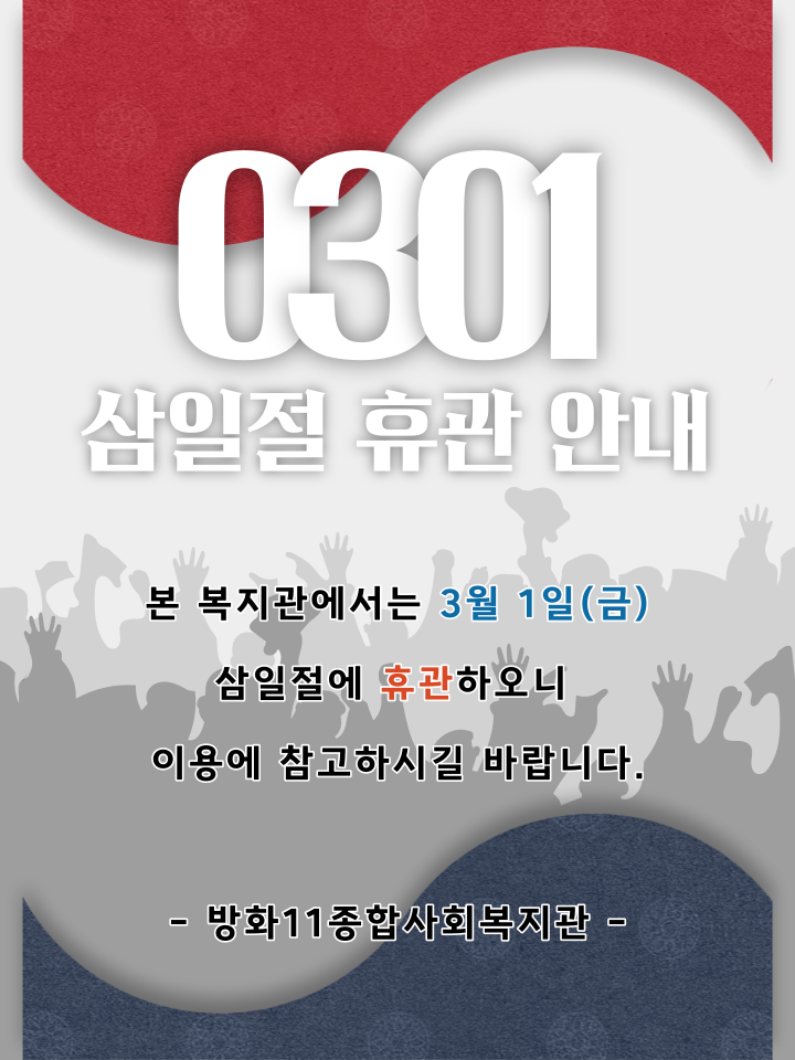 3월 1일 삼일절 휴관안내
