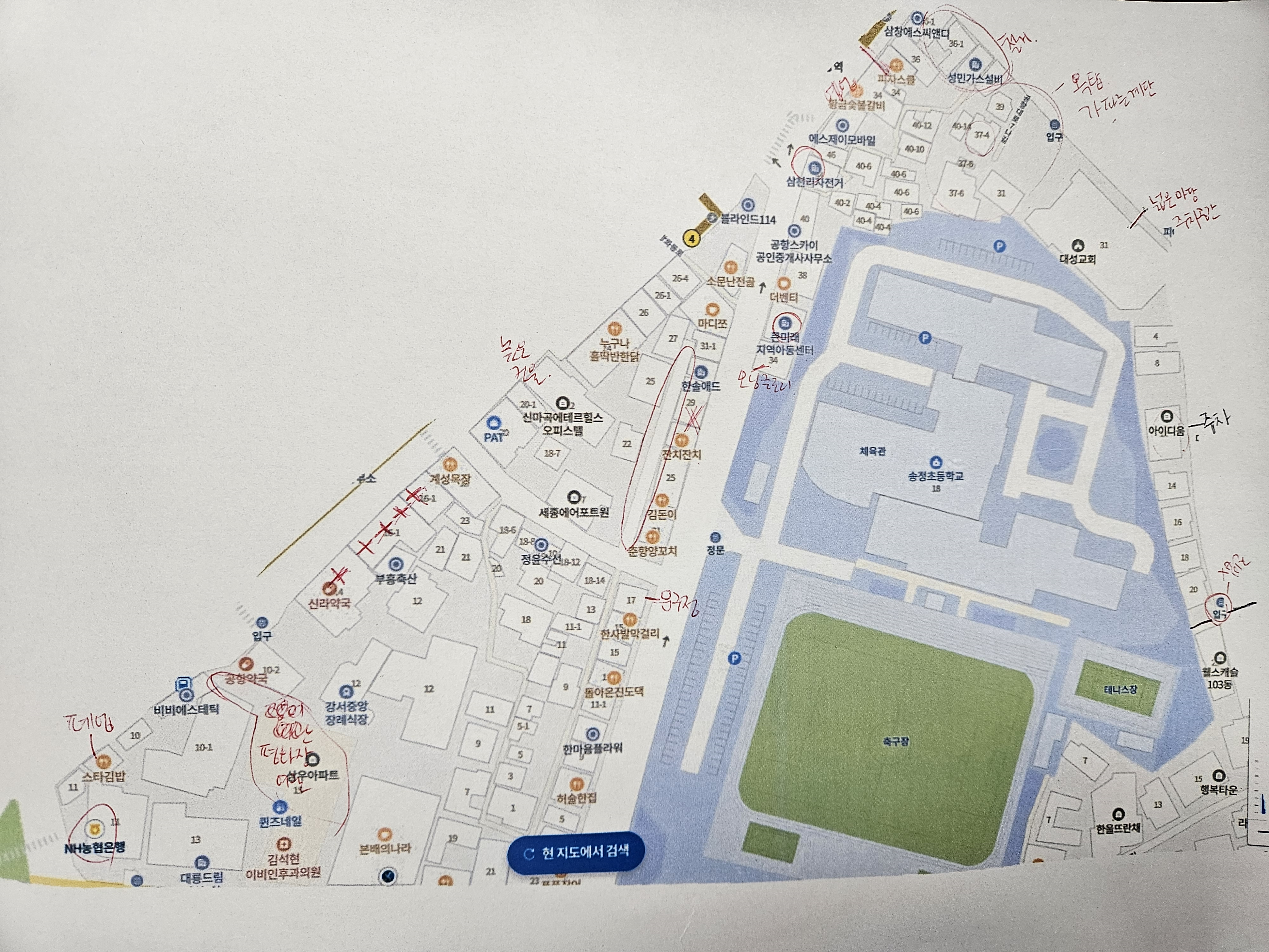 주민센터를 통해 얻은 통 지도를 보며 경계를 표시해보았습니다.