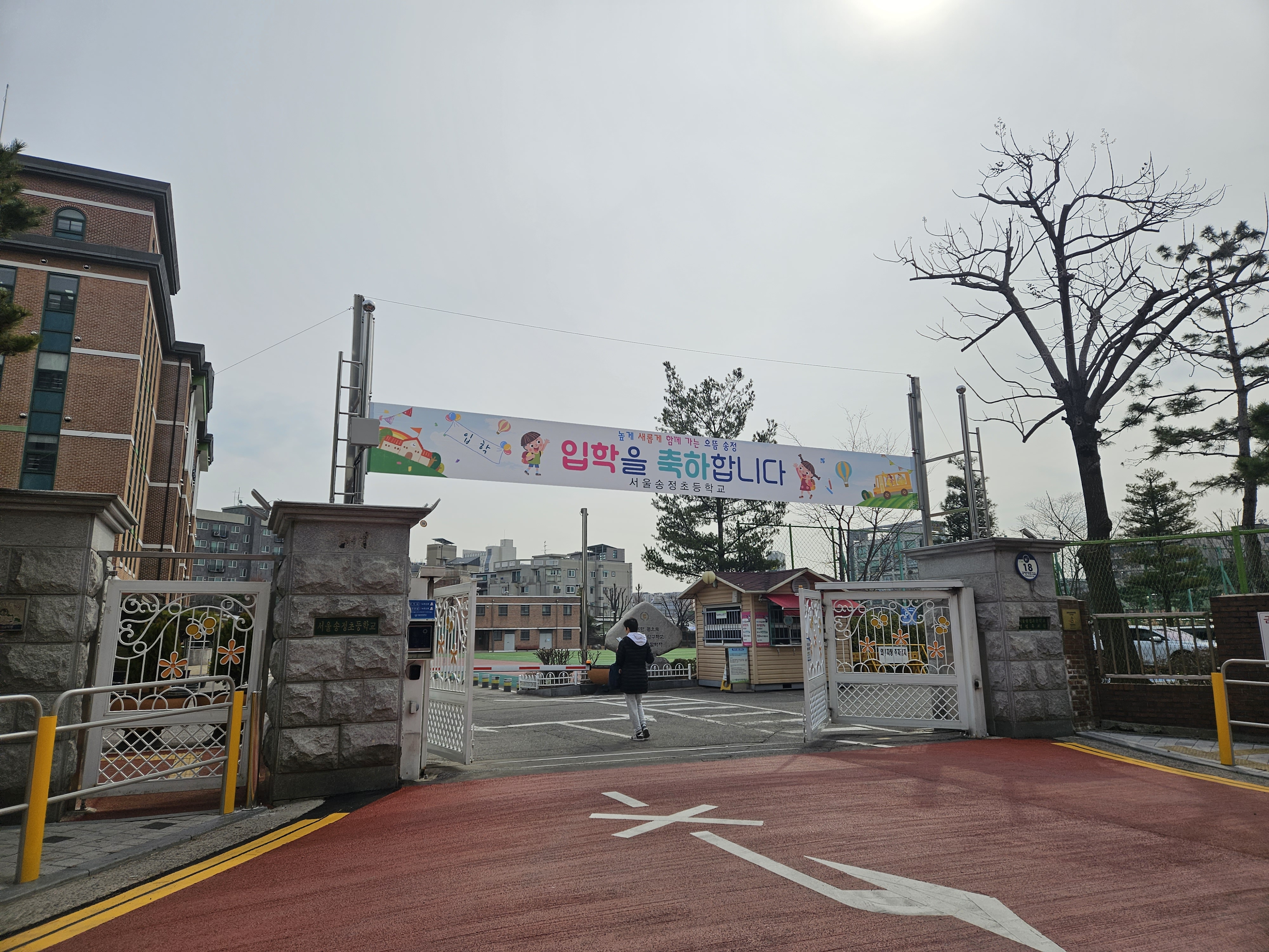 송정초등학교는 새학기를 맞아 신입생을 환영하는 현수막이 눈에 띄었습니다.