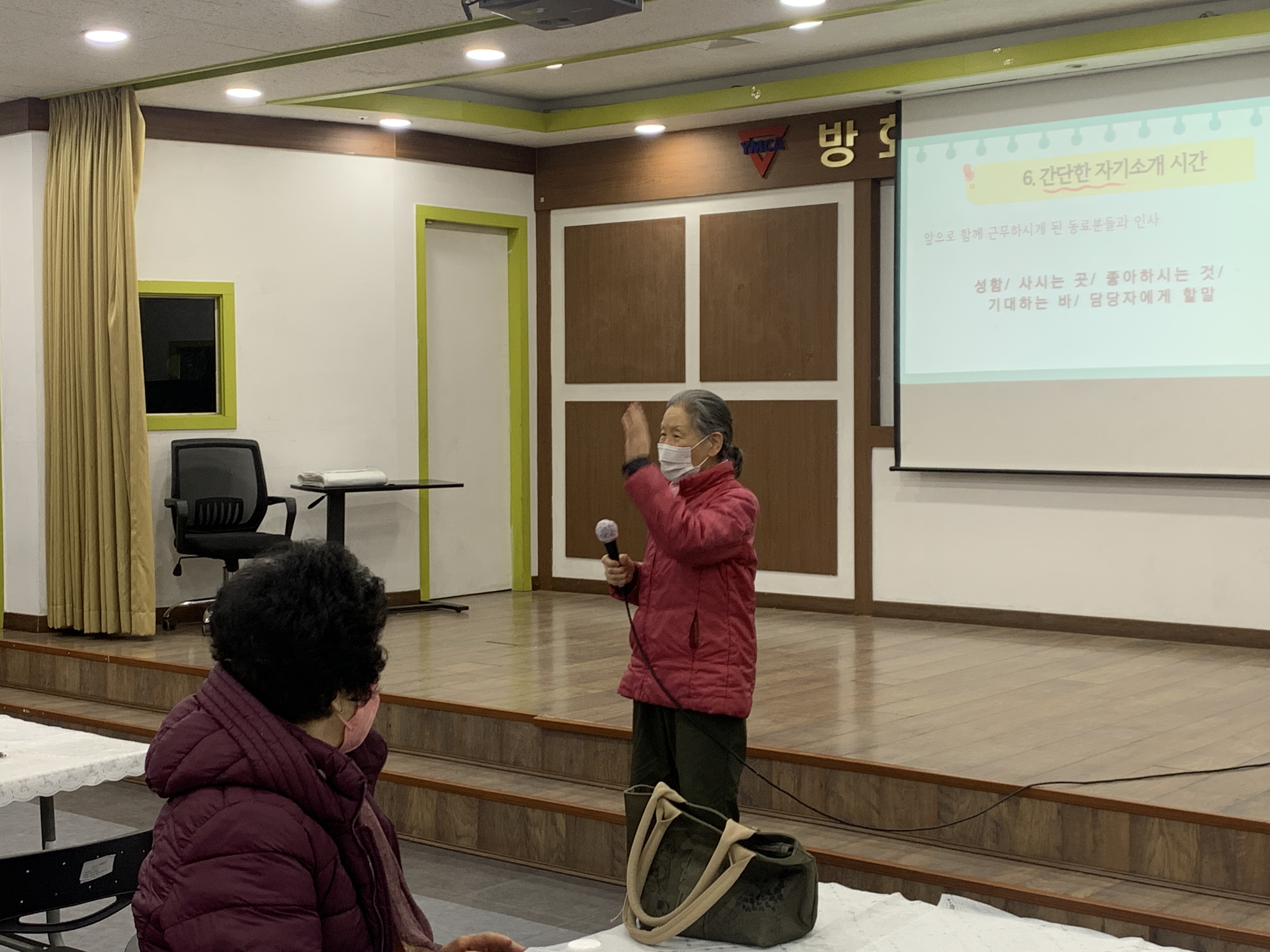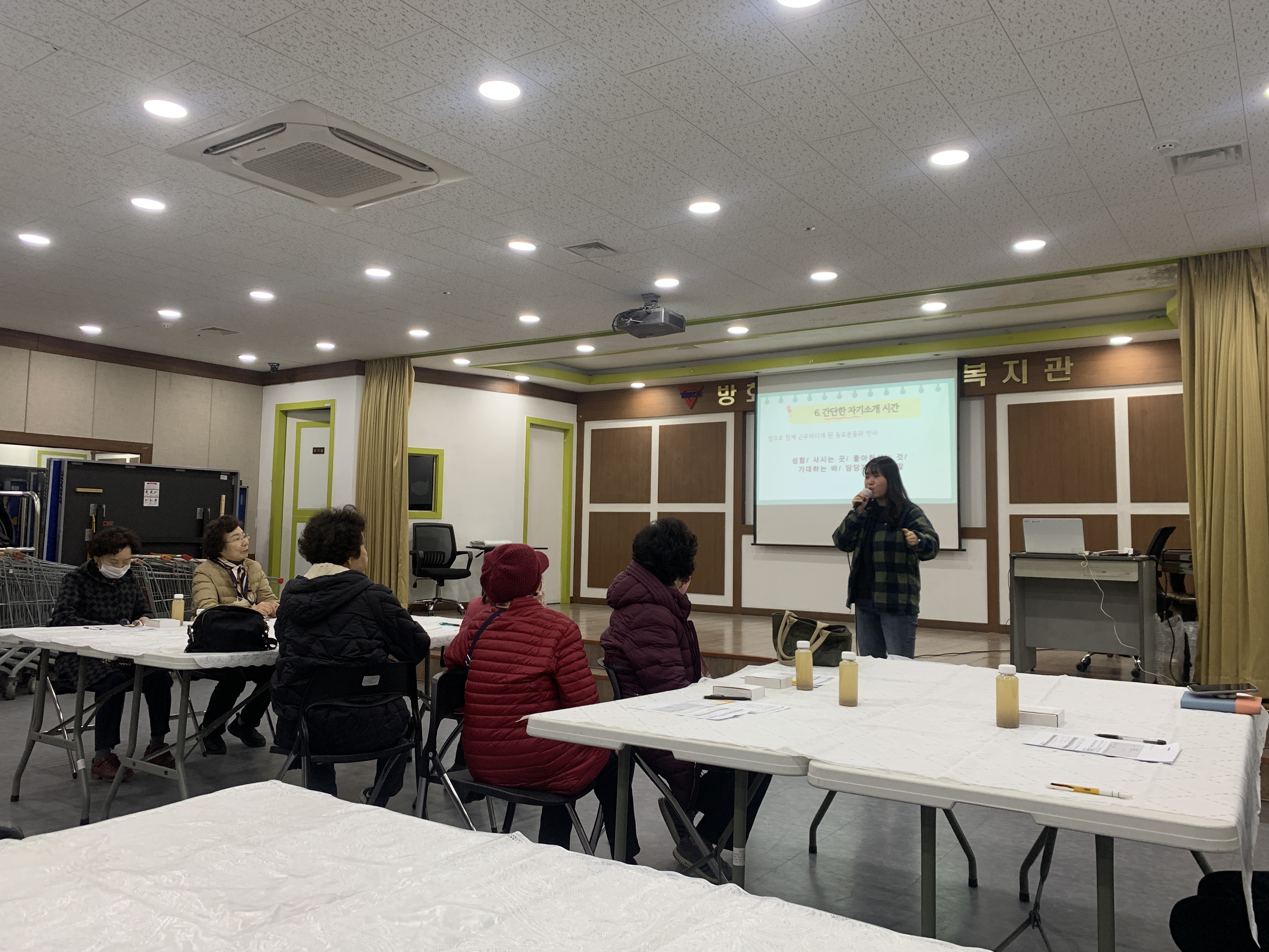 올해 새로 담당하게 된 제가 먼저 자기소개를 하고 앞으로 기대되는 점을 어르신들에게 나누었습니다.