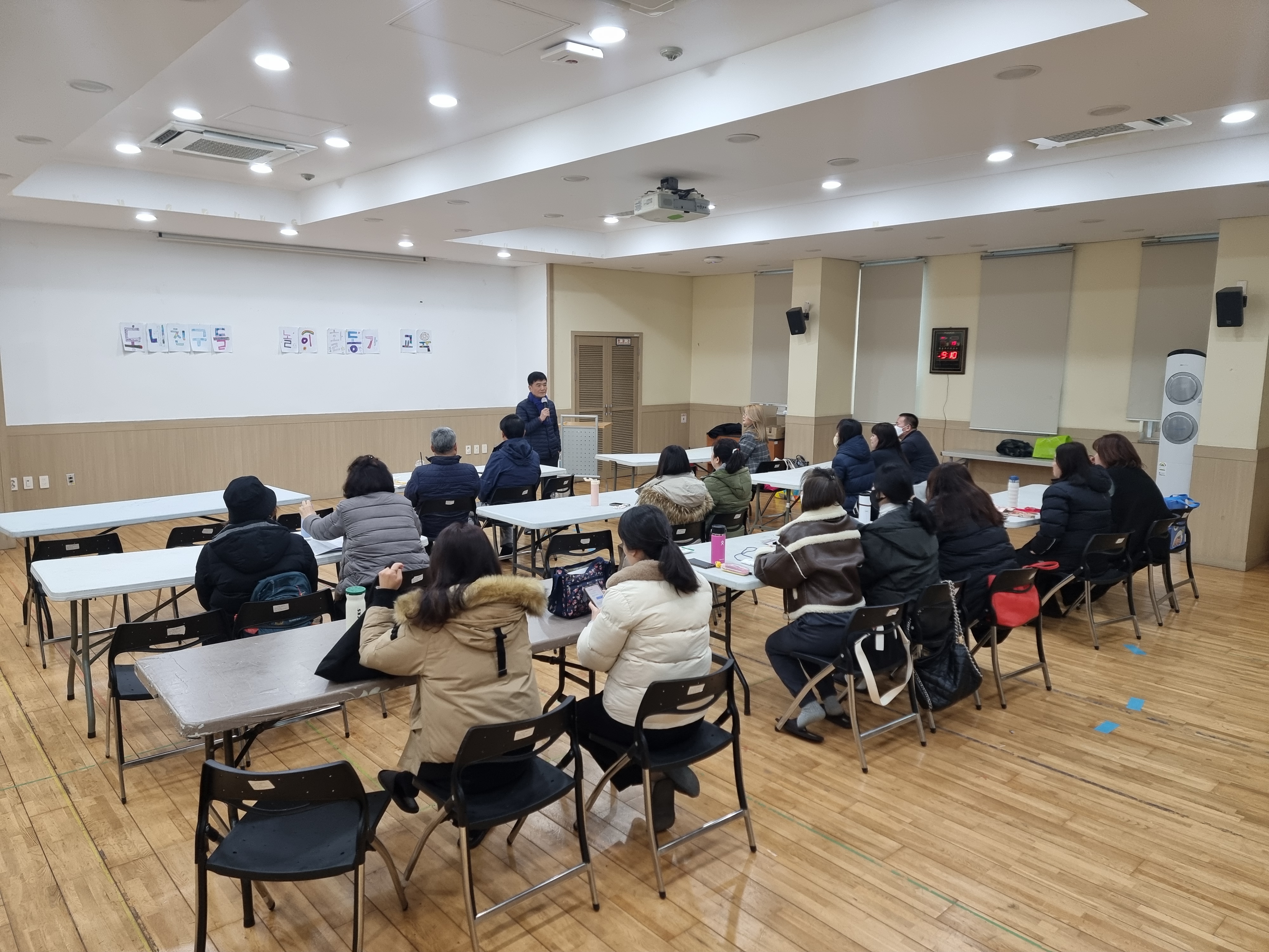 교육을 시작했습니다. 이상호 선생님도 멀리 충주에서 새벽 일찍 출발하셨습니다. 오늘은 보조강사로 인천에서 ‘놀이동무’ 단체를 운영하는 홍문주 선생님이 오셨습니다.