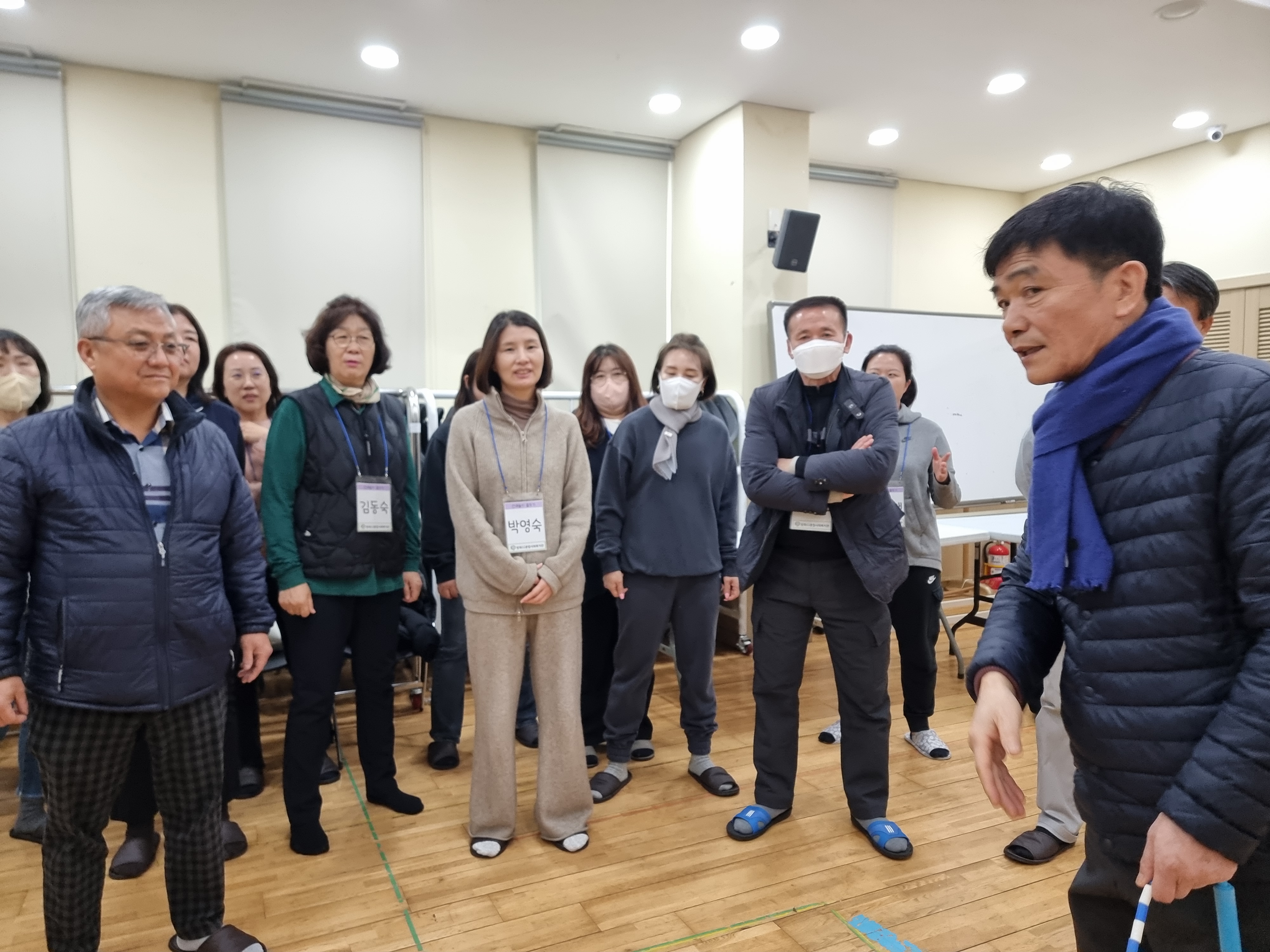 하나둘 모두 모였습니다. 멀리 분당 용인에서 오신 분은 차 막히기 전에 새벽 일찍 나오셨다고 합니다. 1회기 때 배운 손뼉치기와 실뜨기를 복습하면서 이상호 선생님을 기다렸습니다.