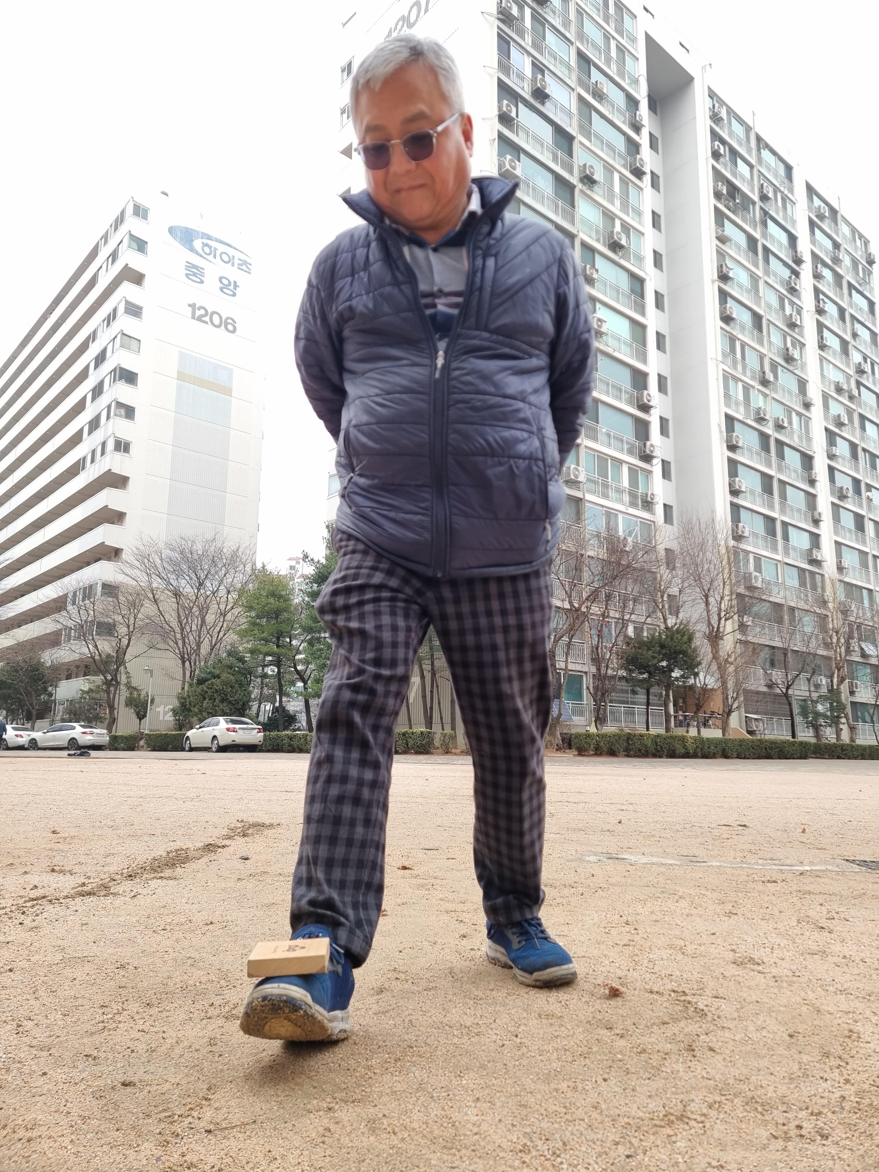 단연코 남성이신 황홍섭 우준하 이정민 님 놀라운 실력을 발휘했습니다. 이정민 님은 먼거리에서도 5번 연속 성공했습니다. 모두 감탄했습니다. 실뜨기는 그토록 어려워하셨는데 비석치기는 과연 놀이왕입니다. 잘하는 사람끼리는 다시 결승전을 했습니다. 결승에 올라온 분들은 전래놀이 한마당에서 비석치기를 담당해야 합니다. 초등학생 아이들에게 우상이 될 겁니다.