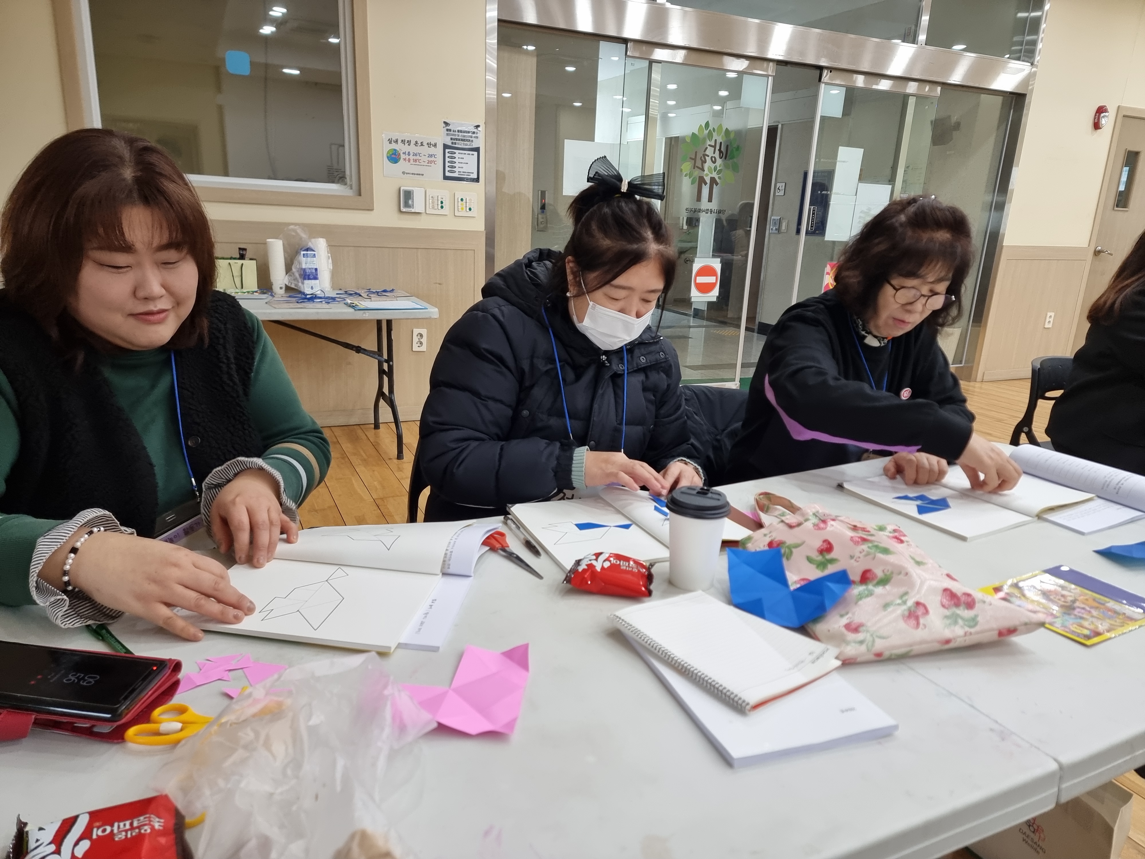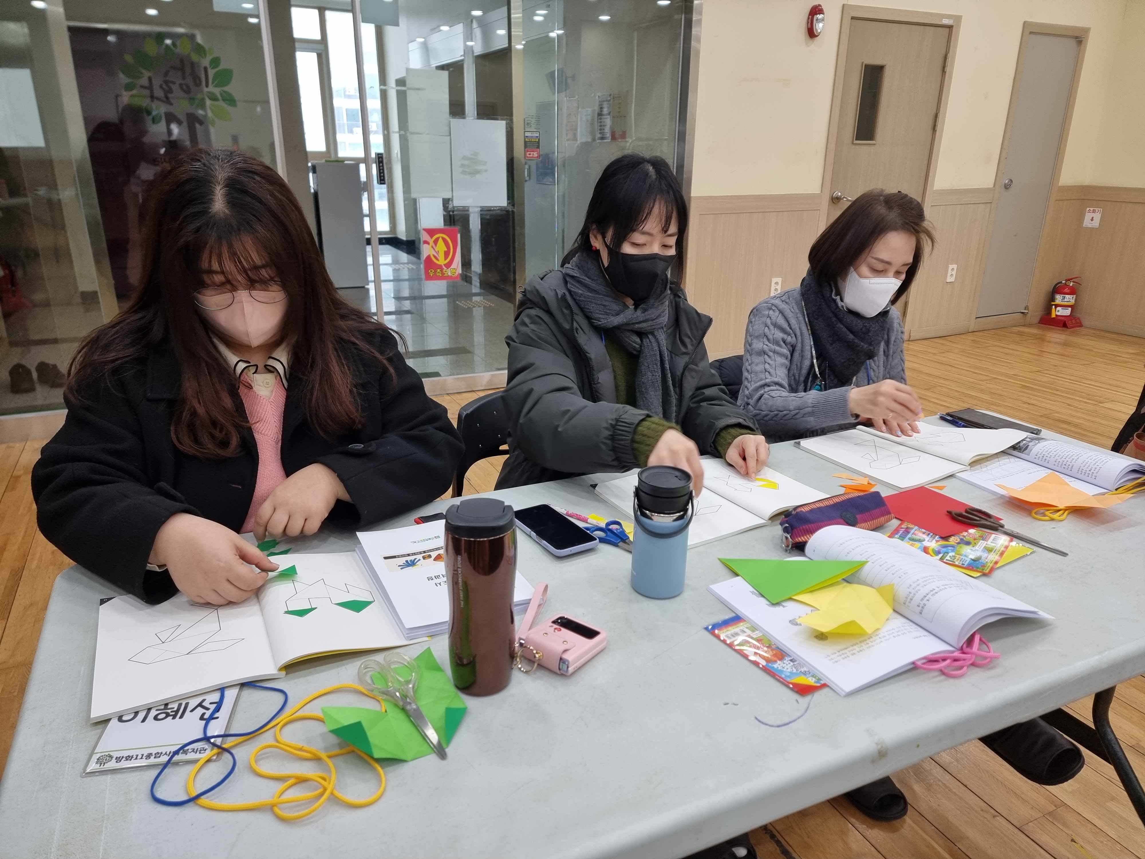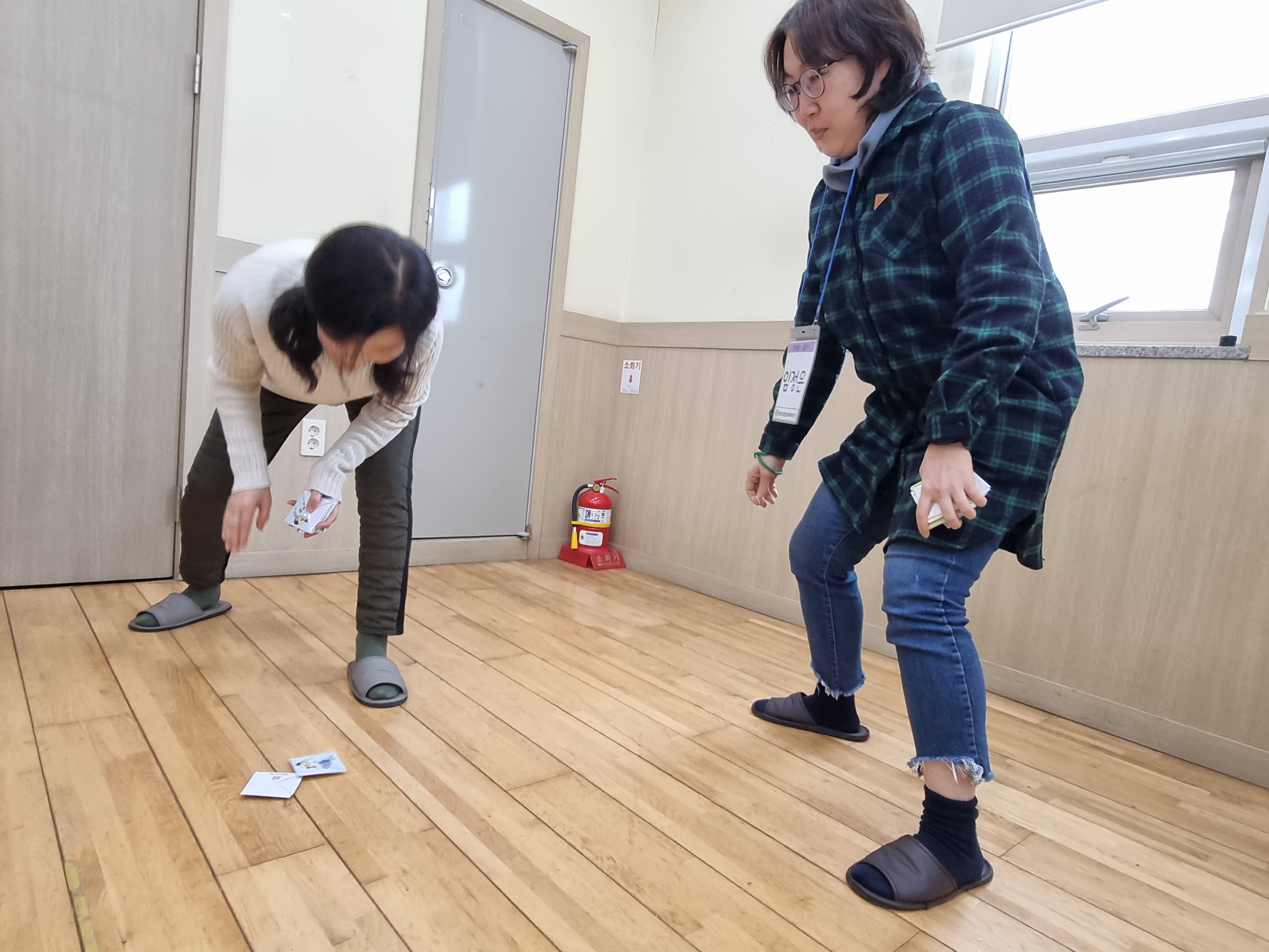 딱지치기를 배웠습니다. 딱지를 접는 방법부터 직접 딱지를 따는 놀이를 했습니다. 옛날에는 종이가 귀한 시절이라 딱지 자체가 귀했는데 지금은 누구나 쉽게 종리를 구할 수 있습니다. 딱지의 재미를 찾는 방법도 알려주셨습니다.