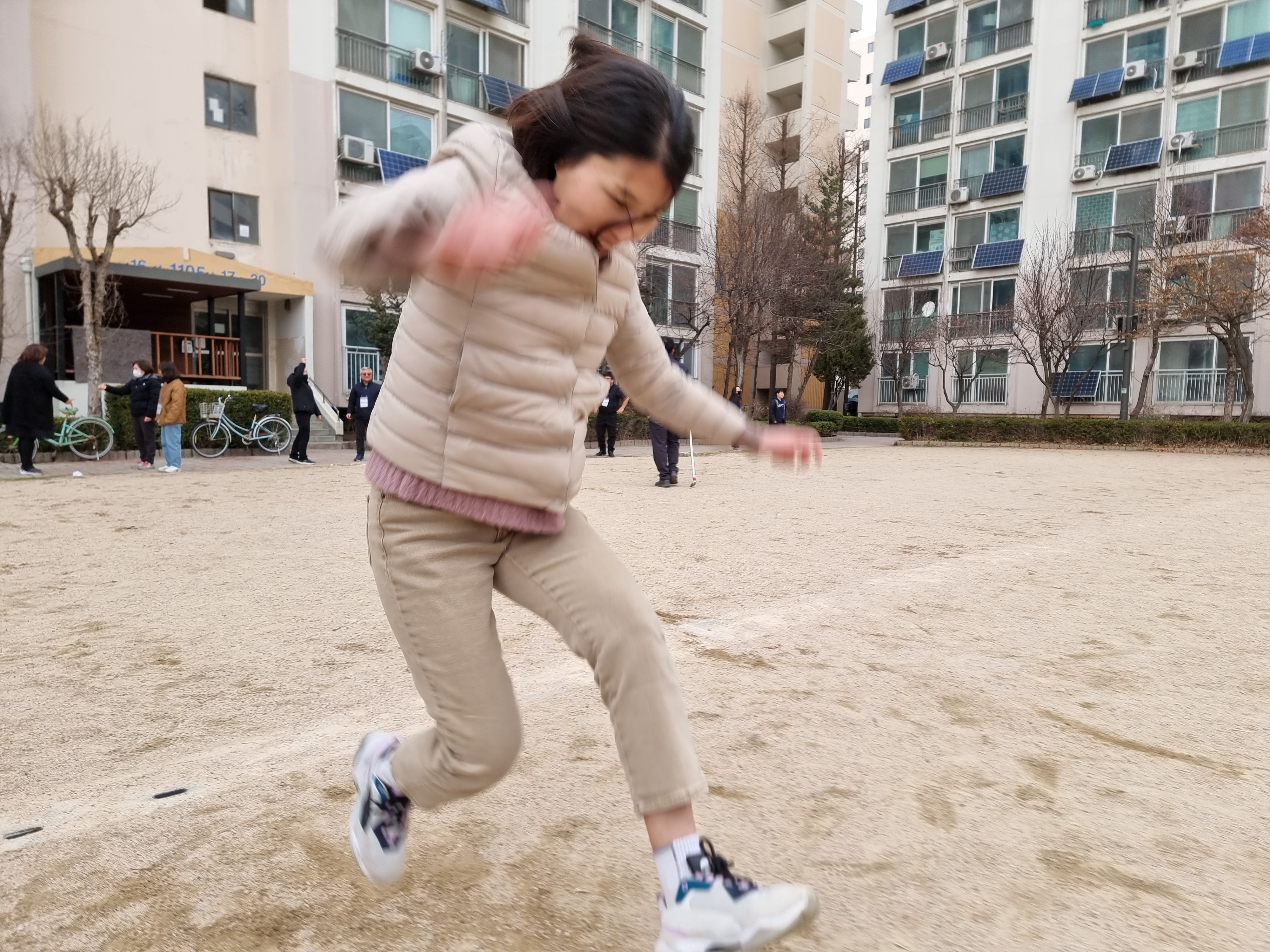 8자놀이를 했습니다. 땅바닥에 8자를 그리고 그 안에서 술래가 잡으러 다녔습니다. 소리를 지르며 도망갔습니다. 땀을 뻘뻘 흘렸습니다. 달팽이 놀이도 재밌습니다. 여러 가지 버전에 맞추어 신나게 뛰고 돌았습니다. 떡장수 놀이도 응용해서 할 수 있습니다.