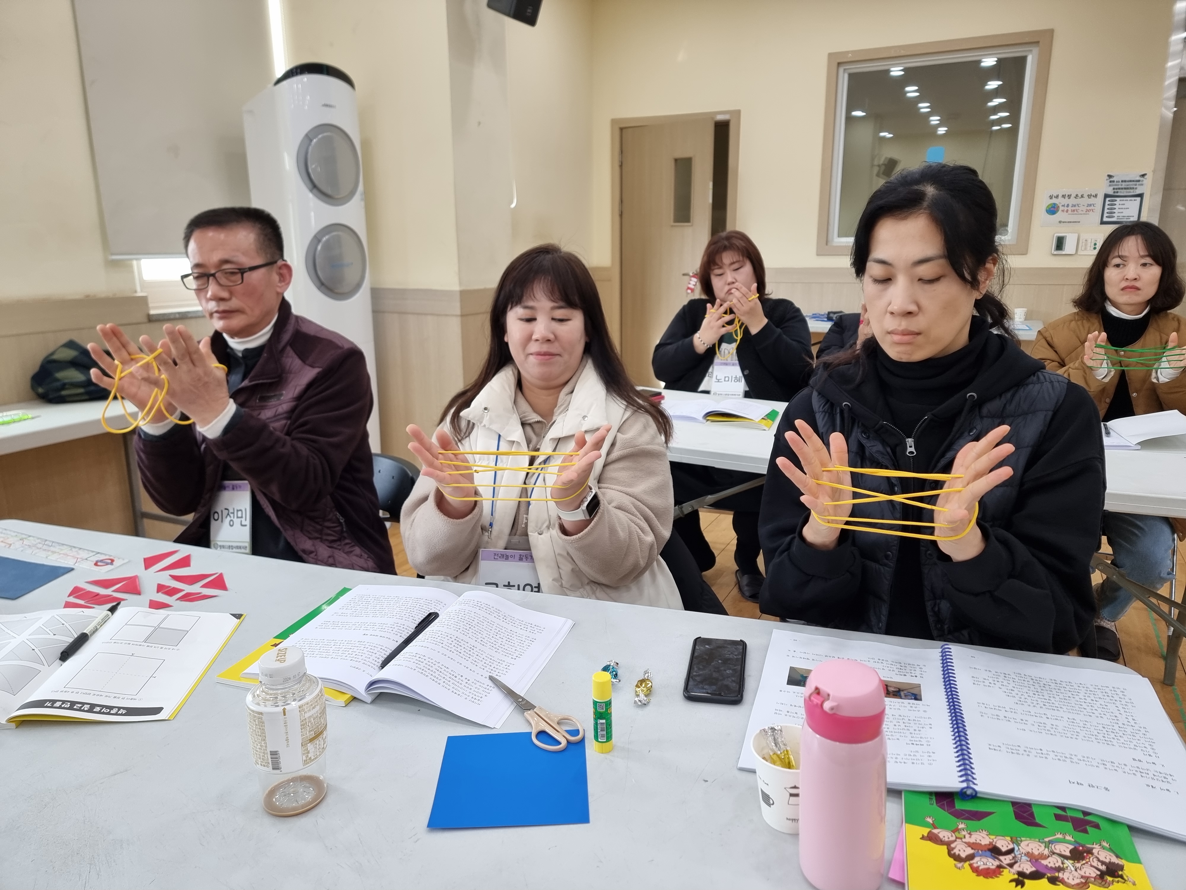 먼저 실뜨기 진도를 나갔습니다. 어느덧 막바지까지 왔습니다. 어려운 사람은 잘하는 사람에게 배웠습니다. 알려주는 사람은 알려주며 한 번 더 익혔습니다. 최고의 복습은 알려주는 겁니다.