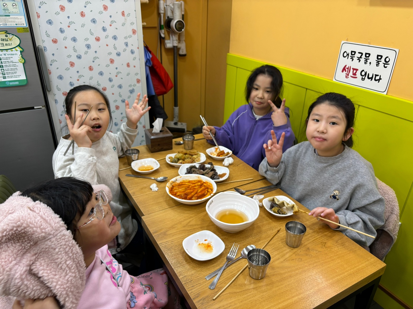 오늘은 점심식사를 아이들과 함께합니다. 처음에는 아이들과 직접 음식을 조리해서 만들어 먹으려 했으나 밖에서 노는 시간을 늘리고 음식은 사먹기로 했습니다. 복지관 근처에 맛있는 분식집인 황제떡볶이에 갔습니다.