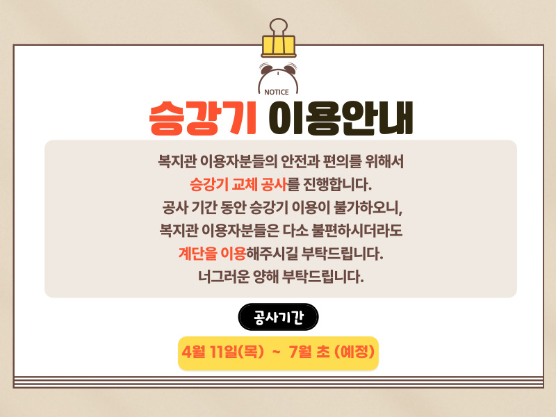 복지관 엘리베이터 공사안내
