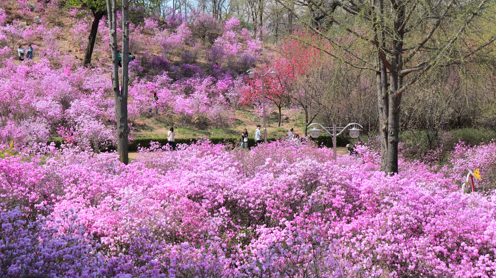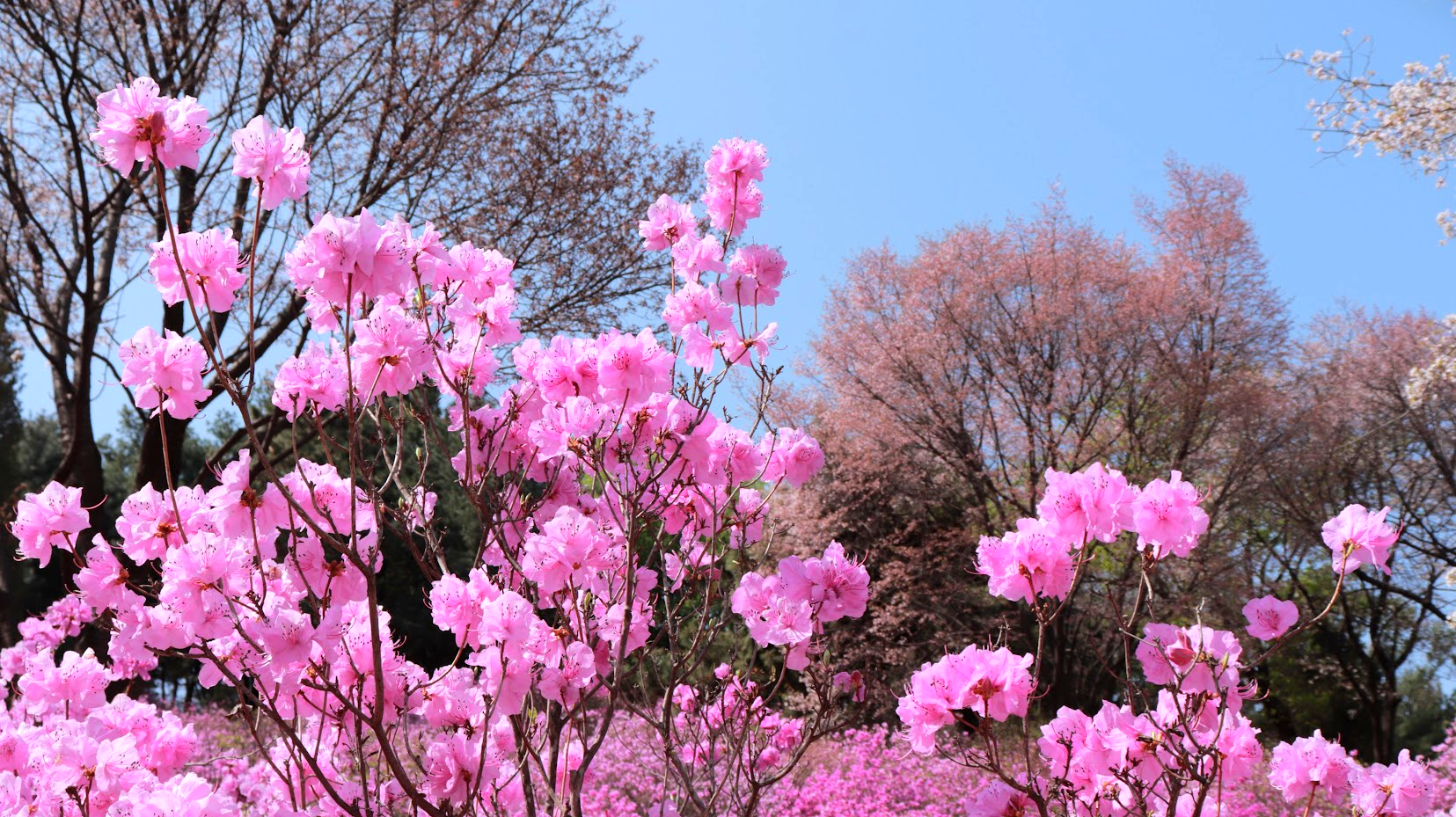 원미산에는 벌써 꽃이 만개해있었습니다. 넓은 공간에 흐드러지게 핀 진달래꽃을 보고 있으니 참 예쁘고 평화로웠습니다. 회원분들도 저와 같은 마음이셨는지 연신 핸드폰을 들어 사진을 찍으셨습니다.