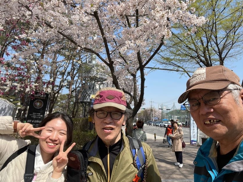 이번 모임에는 이 씨 어르신, 최 씨 아저씨가 참석해주셨습니다. 화사한 등산복을 갖춰입은 두 분과 함께 원미산으로 향했습니다!
