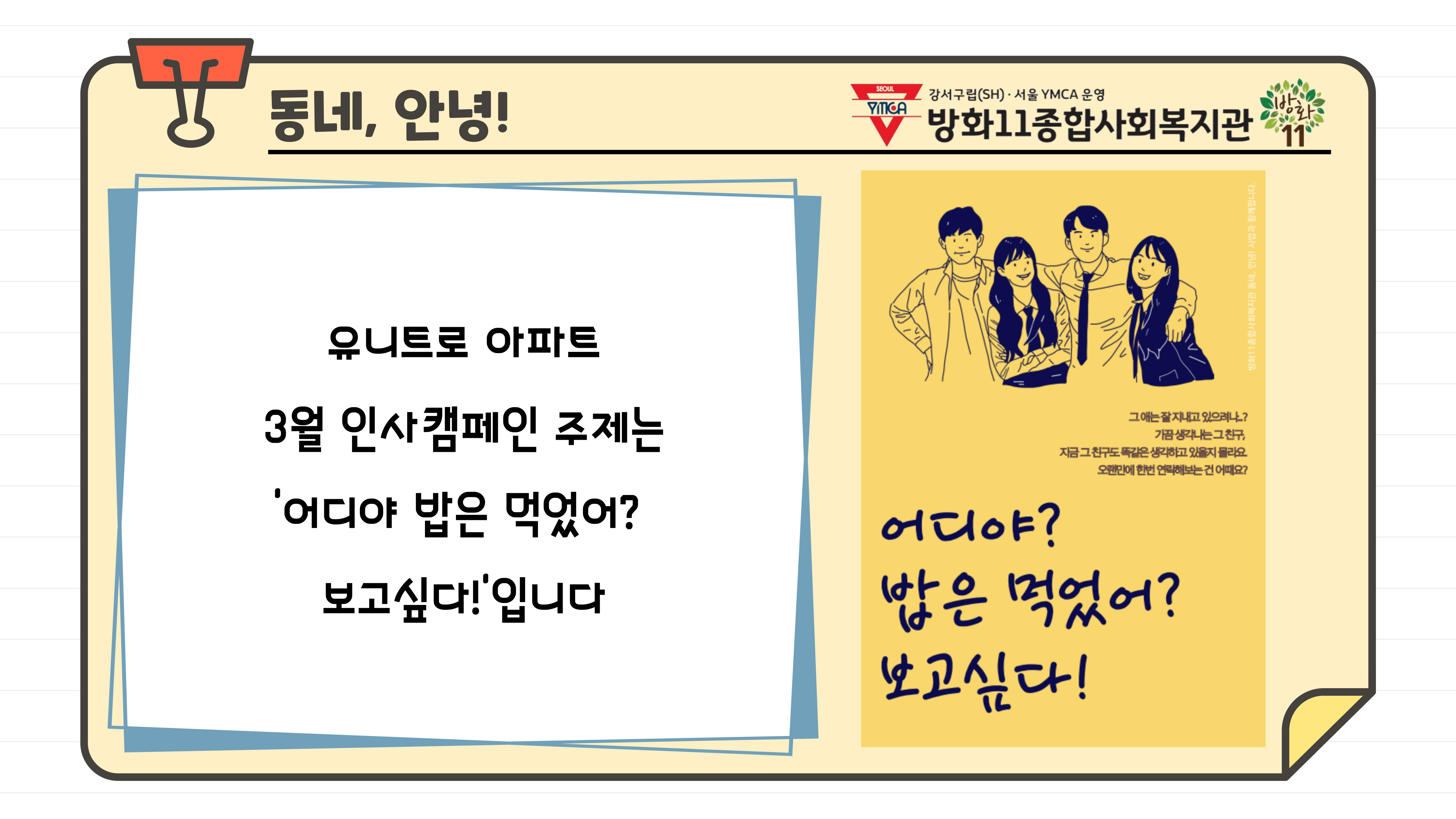 [동네, 안녕!] 유니트로 아파트 3월 포스터 부착 인사캠페인