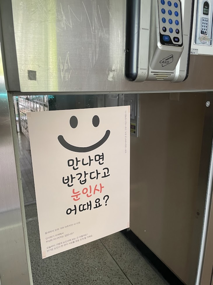 '만나면 반갑다고 눈인사 어때요?'입니다.