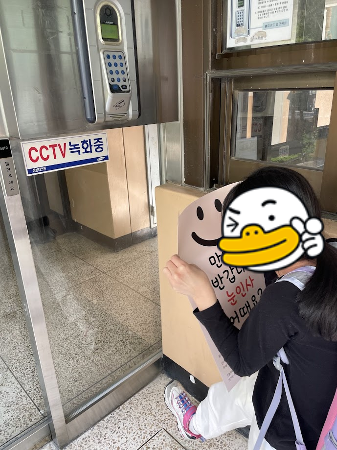 앞으로도 유정이가 살고 있는 동의 포스터는 유정이가 직접 부착해 주기로 했습니다.