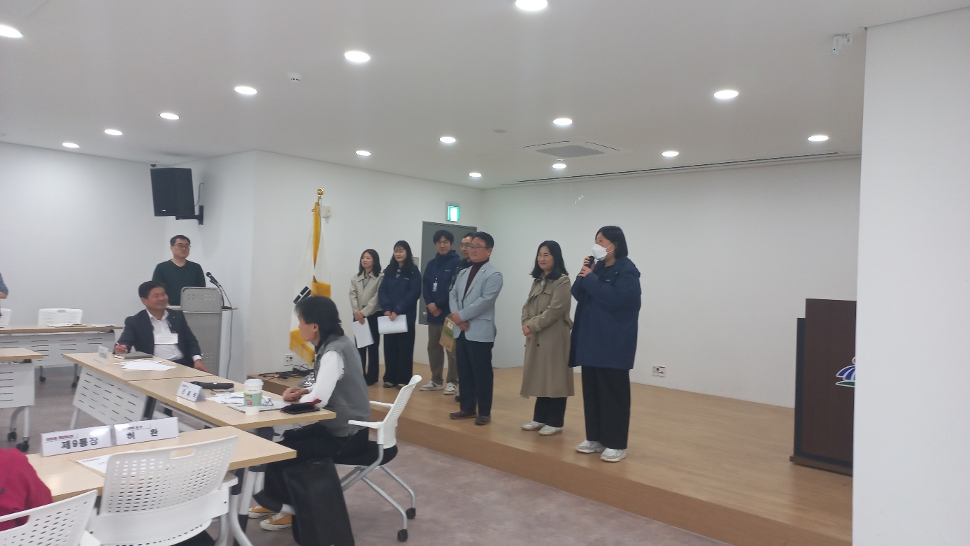 권순범 관장님의 인사를 시작으로 곁에있기과 직원들도 각자가 담당하는 지역(통)을 소개하며 인사했습니다.