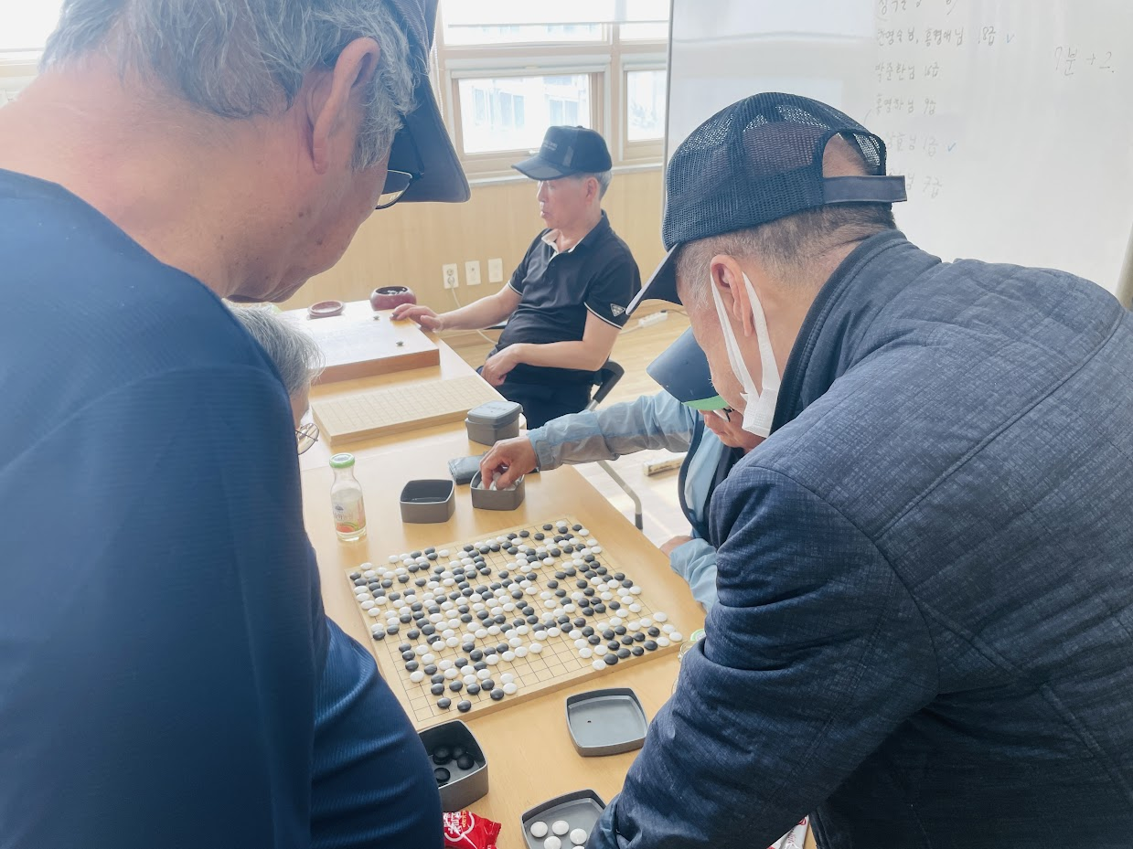 기존 회원 중에서도 참석률이 좋았던 조 씨 어르신, 최 씨 아저씨, 박 씨 아저씨께서도 신규 회원분들이 이 모임에 잘 적응할 수 있도록 많이 도와주셨습니다. 생각보다 많이 모인 회원분들에 바둑 대진표를 어떻게 구성해야 할지 고민하고 있는 담당자를 보시곤 이런저런 의견을 주셨습니다.