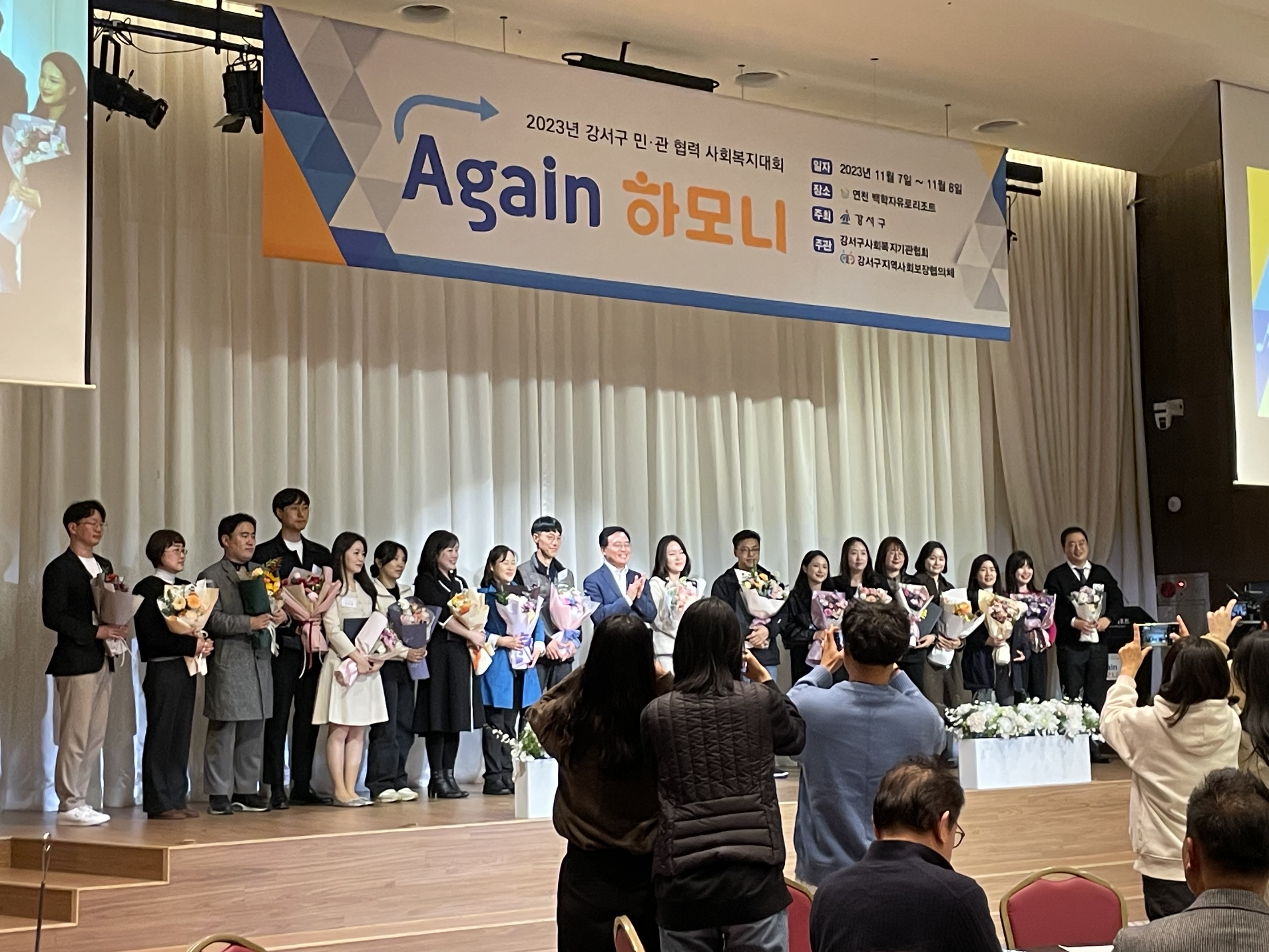 지역주민의 복지 증진을 위하여 남다른 열정을 갖고 지역사회 복지 및 구 행정에 이바지했다는 공으로 함께걷기팀에서 근무하는 이미진 대리가 2023년 강서구 사회복지대회를 맞이하여 강서구청장 표창을 수상했습니다!!