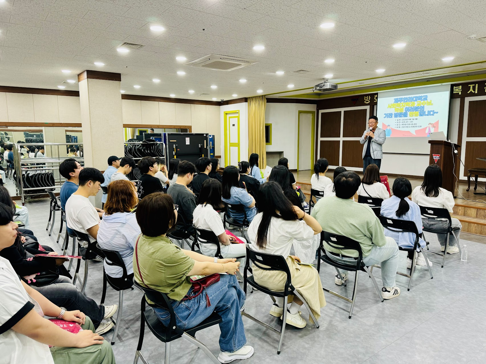 6/3(월)에 제주한라대학교 사회복지학과 학생들과 교수님들이 기관방문을 오셨습니다.