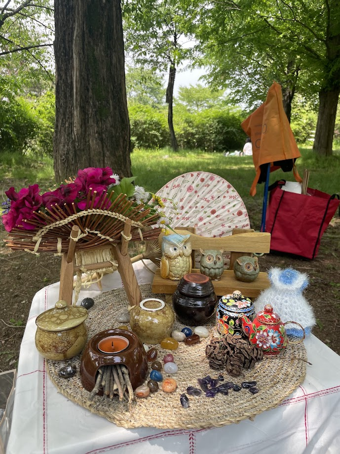 설레는 마음으로 호수공원 한 편에 돗자리를 깔았습니다.