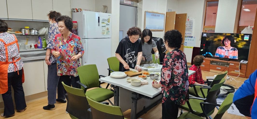 번개팅 진행에 필요한 부침개 준비를 돕기 위해 예정보다 이른 시간에 경로당에 도착했습니다. 경로당에 총무님을 포함해서 서 너분 정도만 와계셔서 '이러다... 아무도... 안 오시면 어떻게 하지..?'하는 걱정스러운 마음이 들었습니다. 이런 마음을 임원진분들께 말씀드렸더니, 감사하게도 장경식 총무님께서 오늘 아침 경로당 회원님들이 계신 단체 채팅방에 오늘 번개팅 행사가 있으니 많이 오셔서 즐거운 시간 보내고 가시면 좋겠다고 안내문자를 보내셨다고 하시며 걱정말라고 하셨습니다. 걱정했던 마음이 무색하게 번개팅 시간이 다가오자 한 분 한 분 경로당에 발걸음을 해주셨습니다.