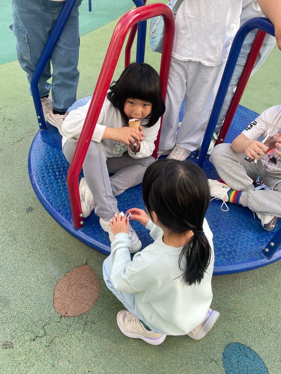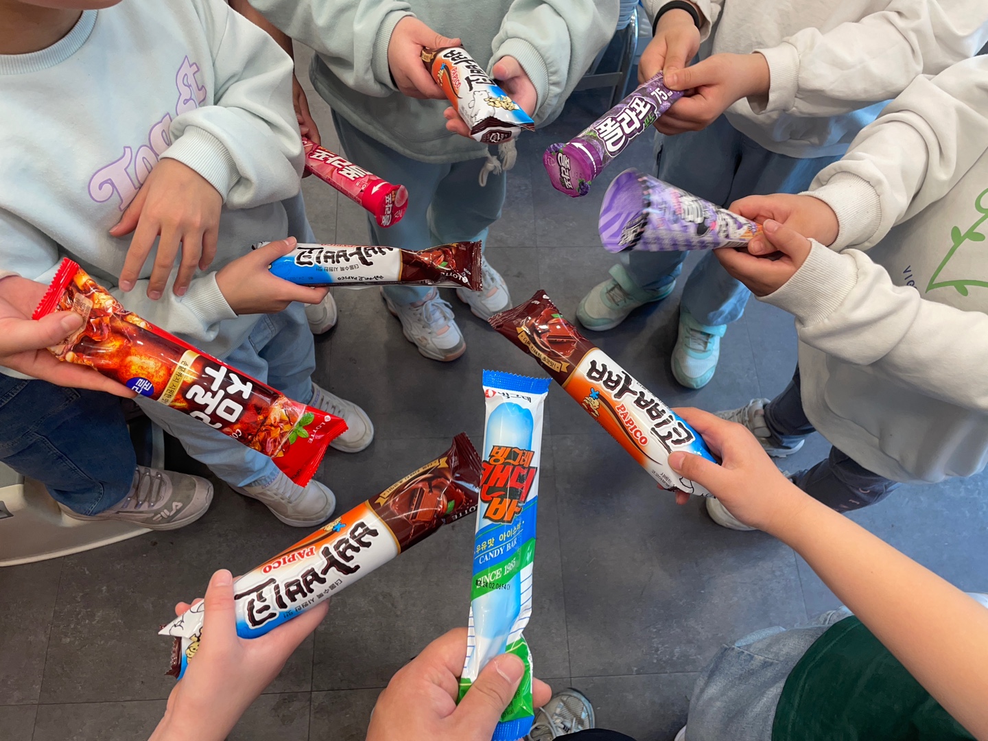 놀이 중간에 예주, 예서 아버님께서 아이들에게 아이스크림 사주셨습니다. 아이들 모두 아버님께 감사인사 잊지 않았습니다. 아버님 덕분에 아이들 얼굴에 웃음꽃 피었습니다.