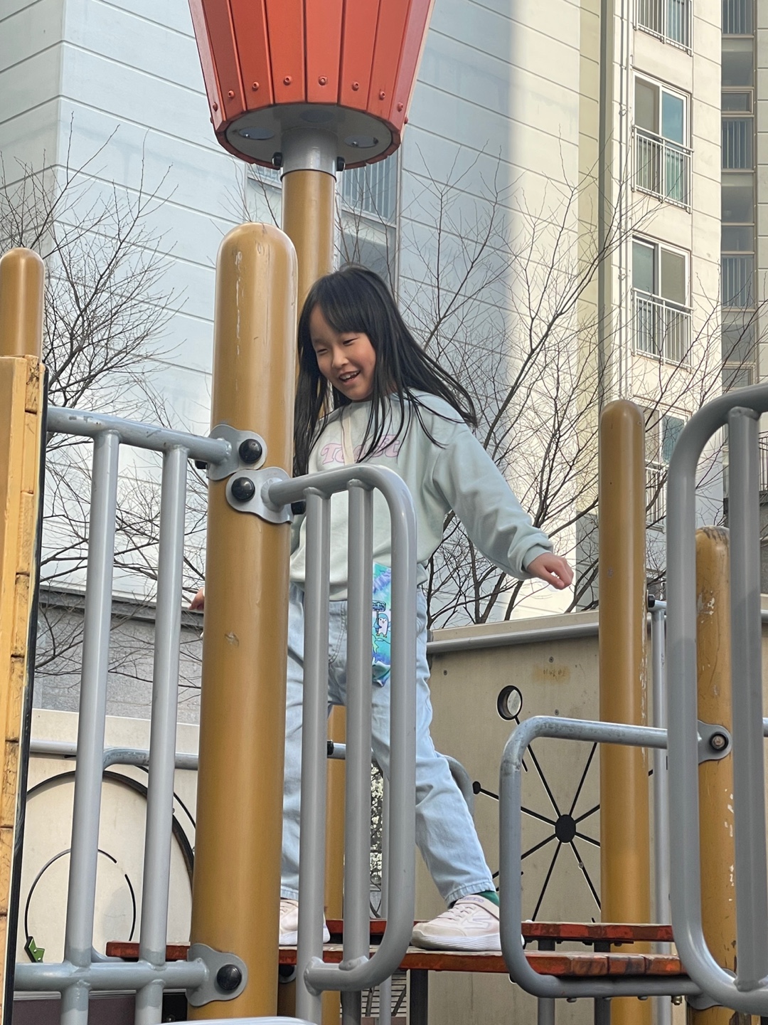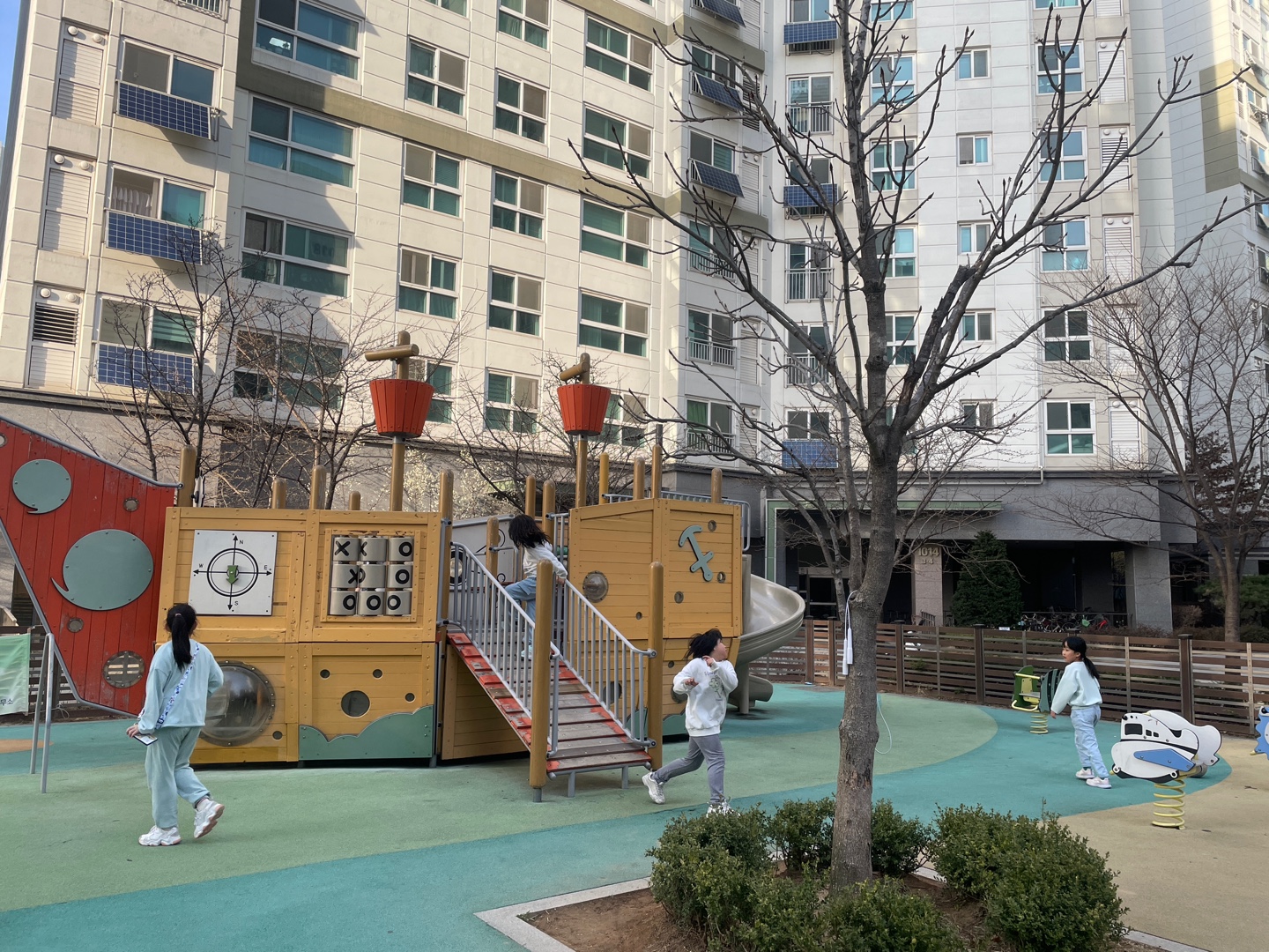 아이들과 뛰어놀기에 마곡하늬공원 놀이터는 다른 아이들이 많았습니다. 주변 아이들 뛰어노는 소리에 대화도 쉽지 않았습니다. 아이들에게 의견을 물으니 마곡 10단지 놀이터에서 놀자고 했습니다. 아이들이 자주 노는 ‘배 놀이터’가 마곡 10단지 안에 있다고 합니다. 아이들이 놀이터까지 길안내 해주었습니다.