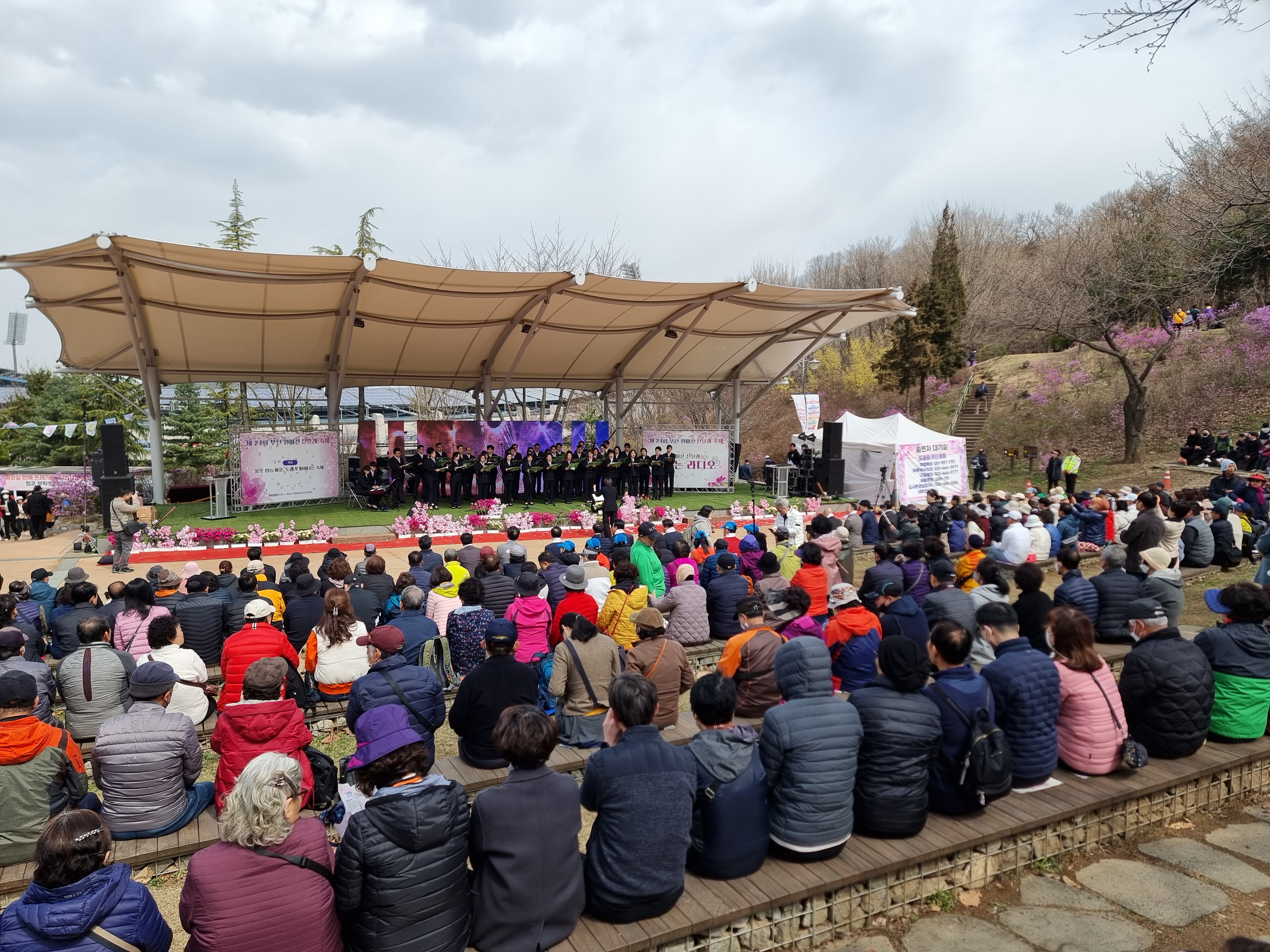 부천종합운동장역은 벌써 진달래 축제 맞이 준비가 한창입니다. 시간이 지나면 사람이 더 많아질 겁니다.
