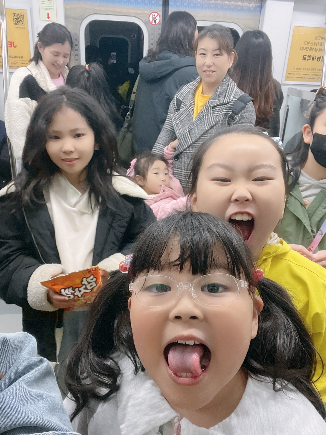 어느덧 모두 모였습니다. 김포공항 서해선은 우리나라에서 가장 깊은 곳에 있는 지하철입니다. 엘리베이터를 타고 계단을 내려가서 지하철을 탔습니다. 20명이 넘는 사람이 한꺼번에 이동하니 그야말로 대가족입니다.