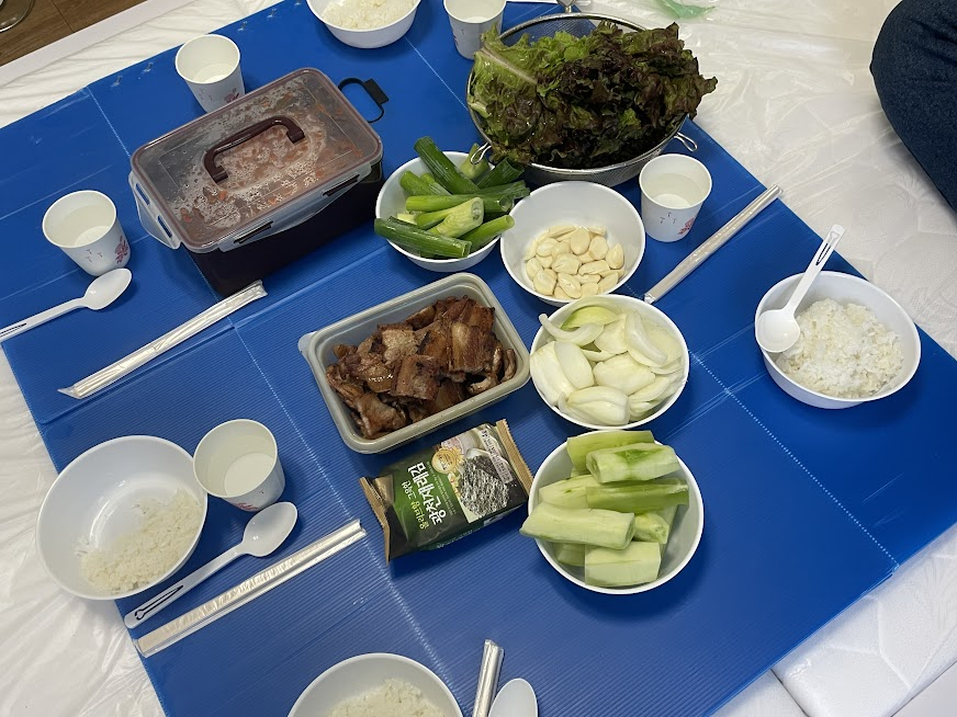 "삼겹살이 너무 맛있어요! 야채들도 직접 손질해두신거죠? 이른 시간부터 고생하셨을 것 같아요. 너무 감동이에요."