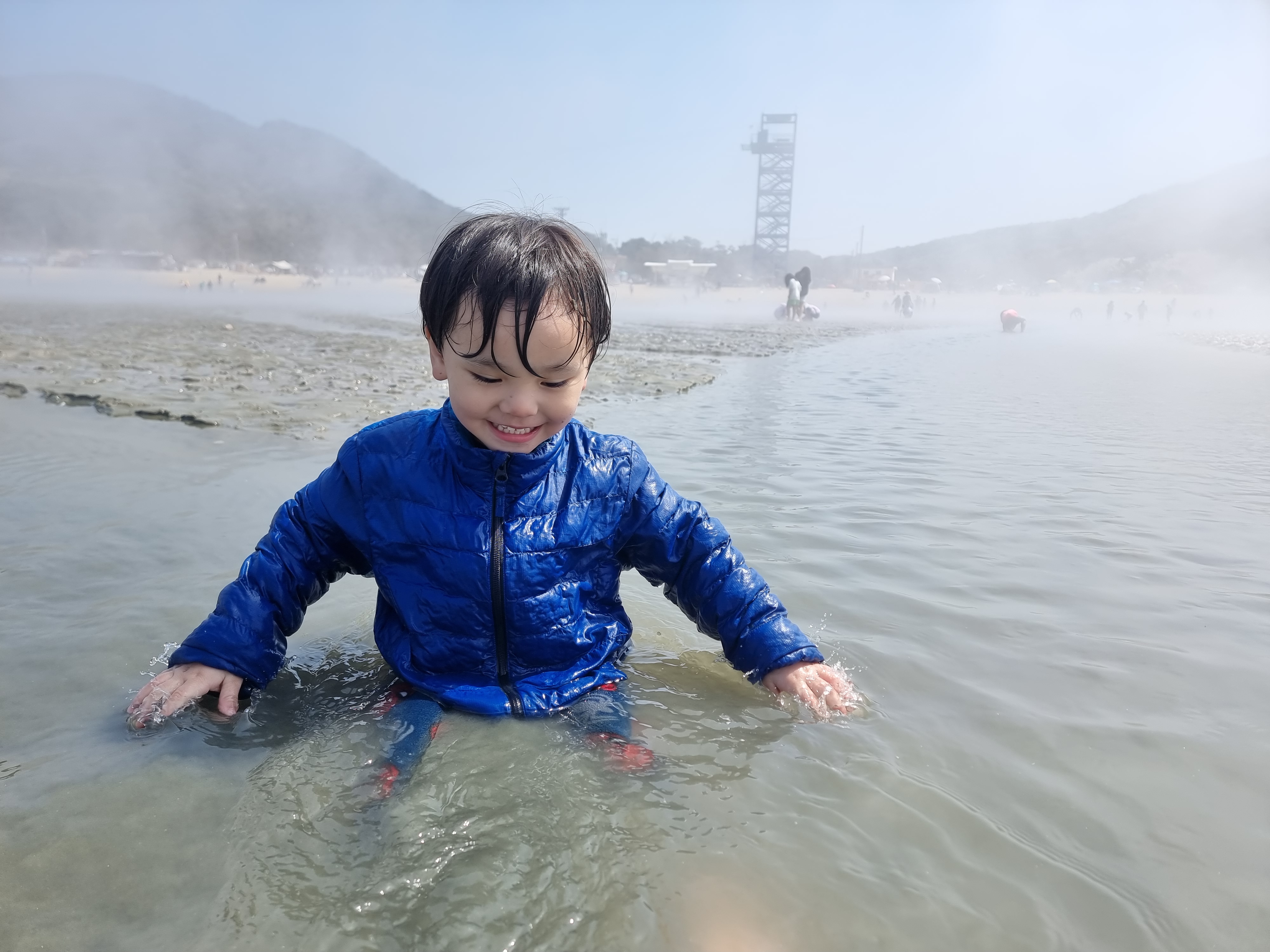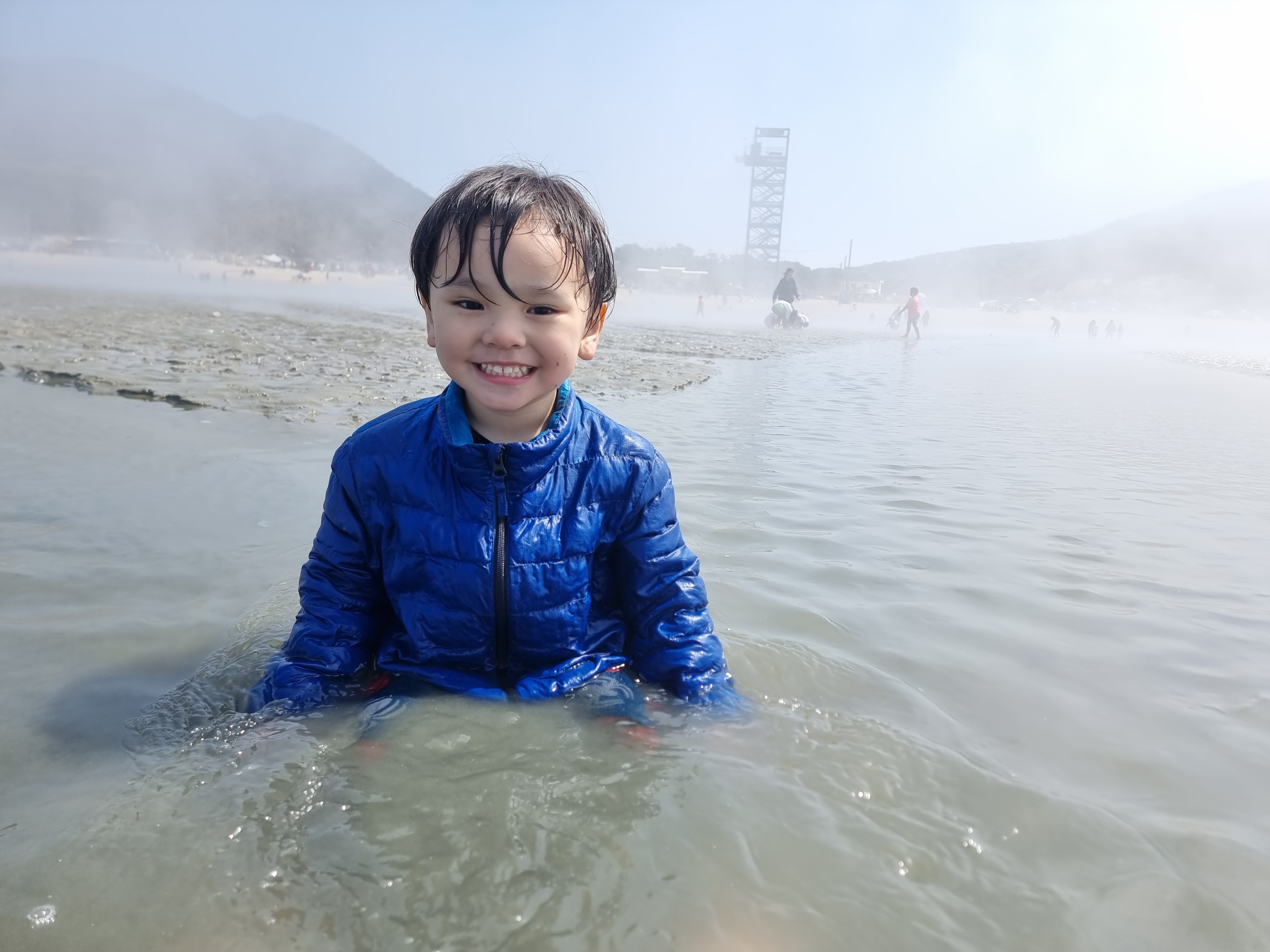 바다가 점점 더 멀어졌습니다. 아이들도 부모들도 점점 더 바다 깊숙이 들어갔습니다. 재영이는 실수인 듯 일부러인 듯 바다에 몸을 담그기 시작했습니다. 옷이 젖어 추울까 재영이를 억지로 끌어안고 엄마 정연희 님에게 데리고 갔습니다. 정연희 님도 포기한 듯 신나게 놀라고 했습니다. 재영이는 또다시 바다로 뛰어들었습니다. 온몸이 젖도록 신나게 놀았습니다.