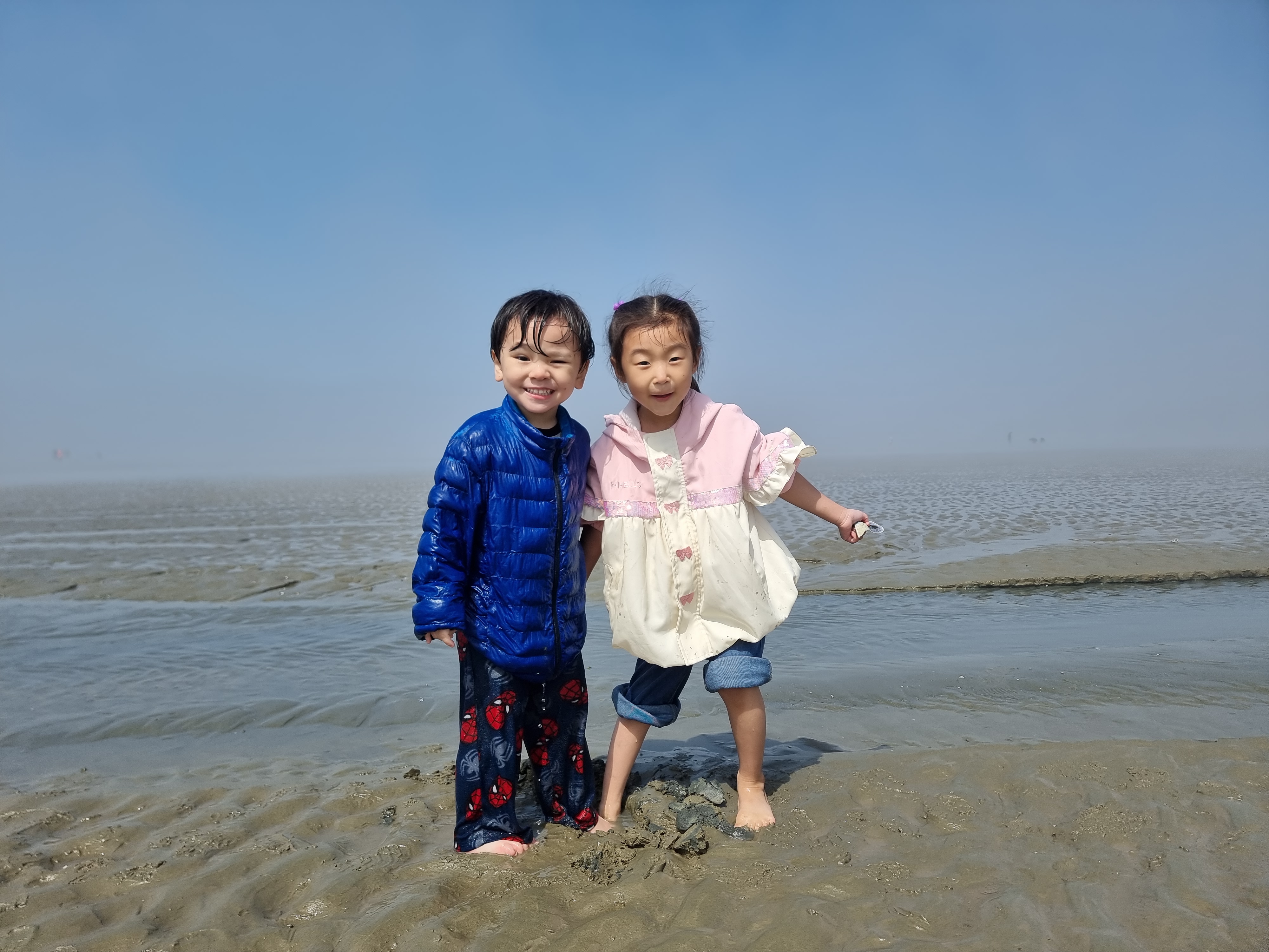 재영이의 모습을 보고 서영이와 지영이도 바다에 들어가기 시작했습니다. 어린 재영이와 달리 서영이와 지영이는 대화가 되니 절대 옷이 젖으면 안된다고 신신당부를 했습니다. 다행히 서영이와 지영이는 더 이상 물에 들어가지 않고 갯벌에서 신나게 놀았습니다.