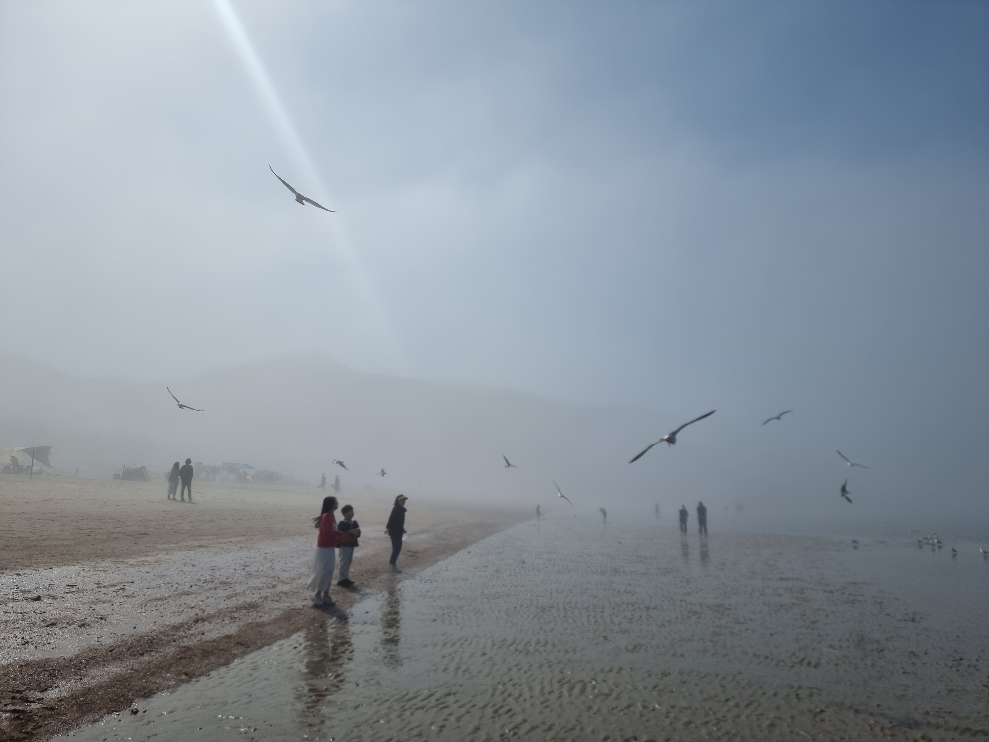 30분 정도 걸려 무의도 하나개 해수욕장에 도착했습니다. 여전히 해무가 넘실 걸립니다. 눈앞에 구름이 오가는 모습이 보였습니다.