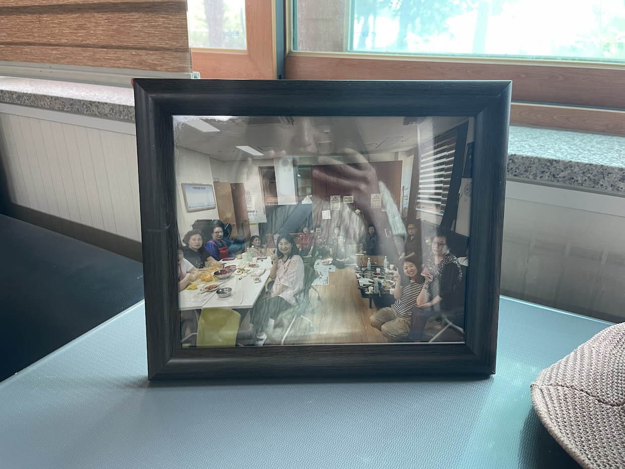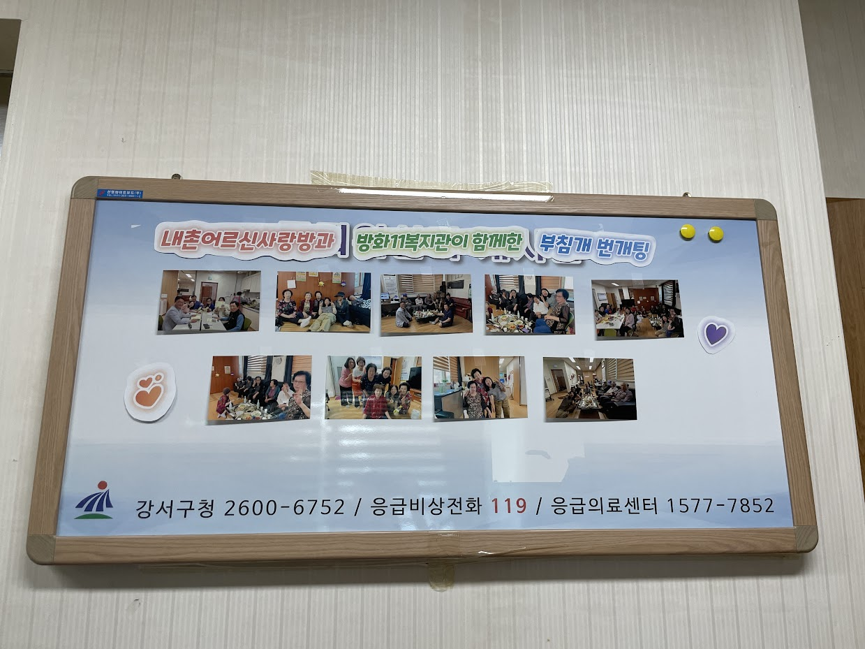 "총무님~~ 여기 칠판에 사진 붙여도 되나요? 여기다 붙이면 어르신들이 오며가며 보실 수 있을 것 같아요!"
