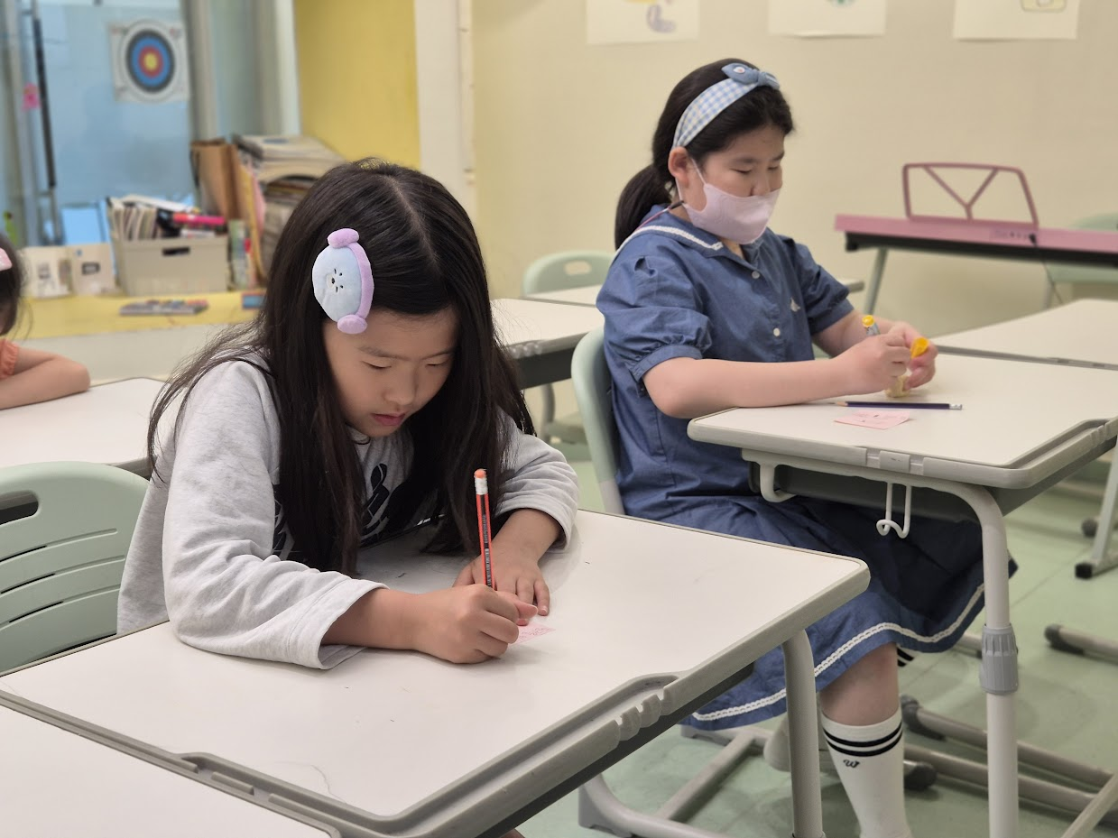 소감을 나누는 과정도 참 의미있었습니다. 소감을 일찍 쓴 몇몇 친구들이 먼저 제출하고 나가면 안될지 물어보았습니다. 이 이야기를 들은 다른 친구는 "우리가 열심히 썼는데 같이 잘 들어줘야 해요!"라고 말하며 소감을 적극적으로 나눠주었습니다.