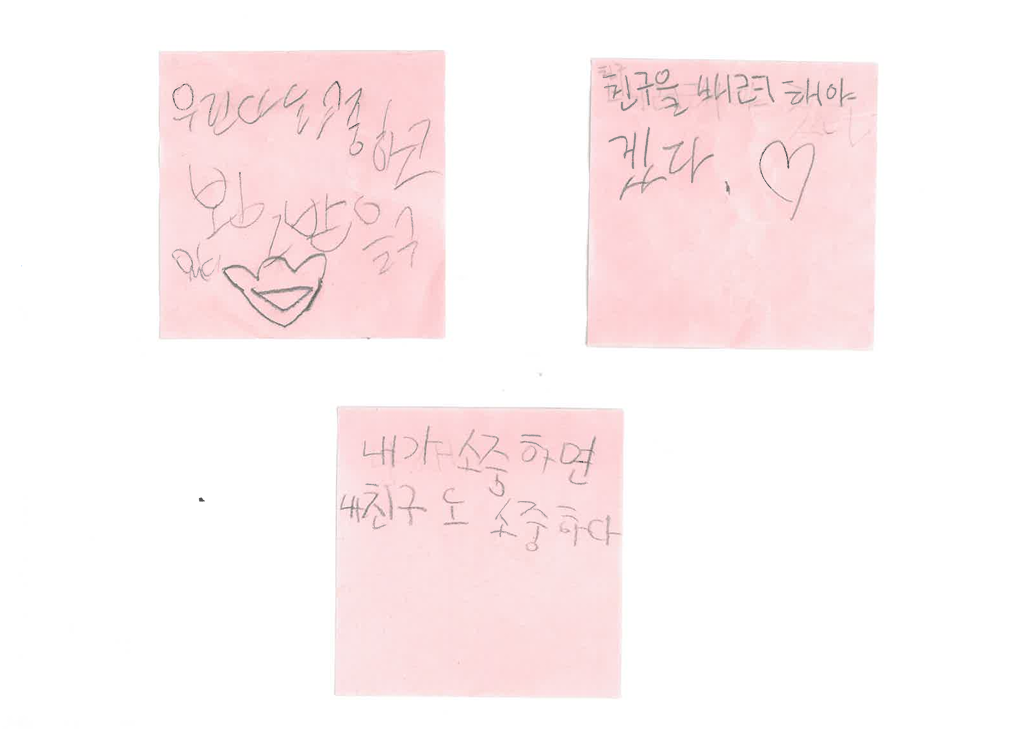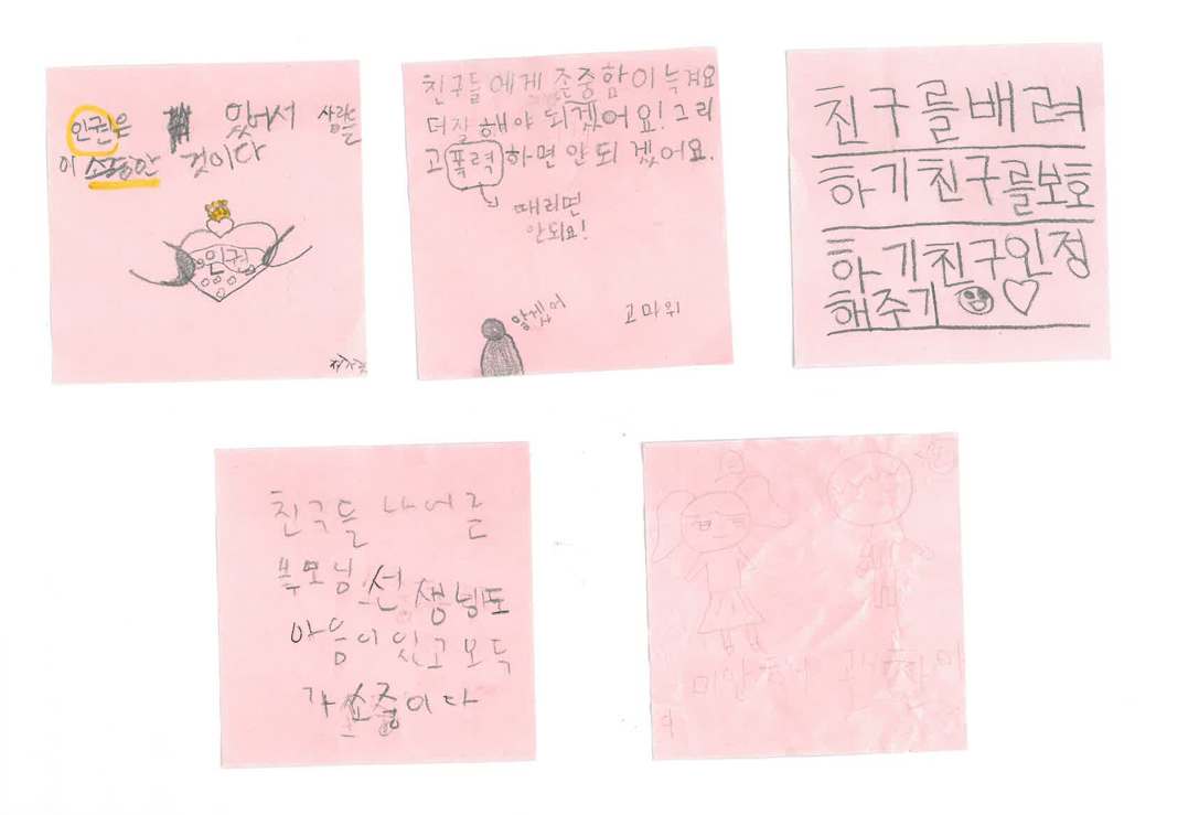"앞으로 친구를 배려하고, 보호하고, 인정해줘야겠어요."