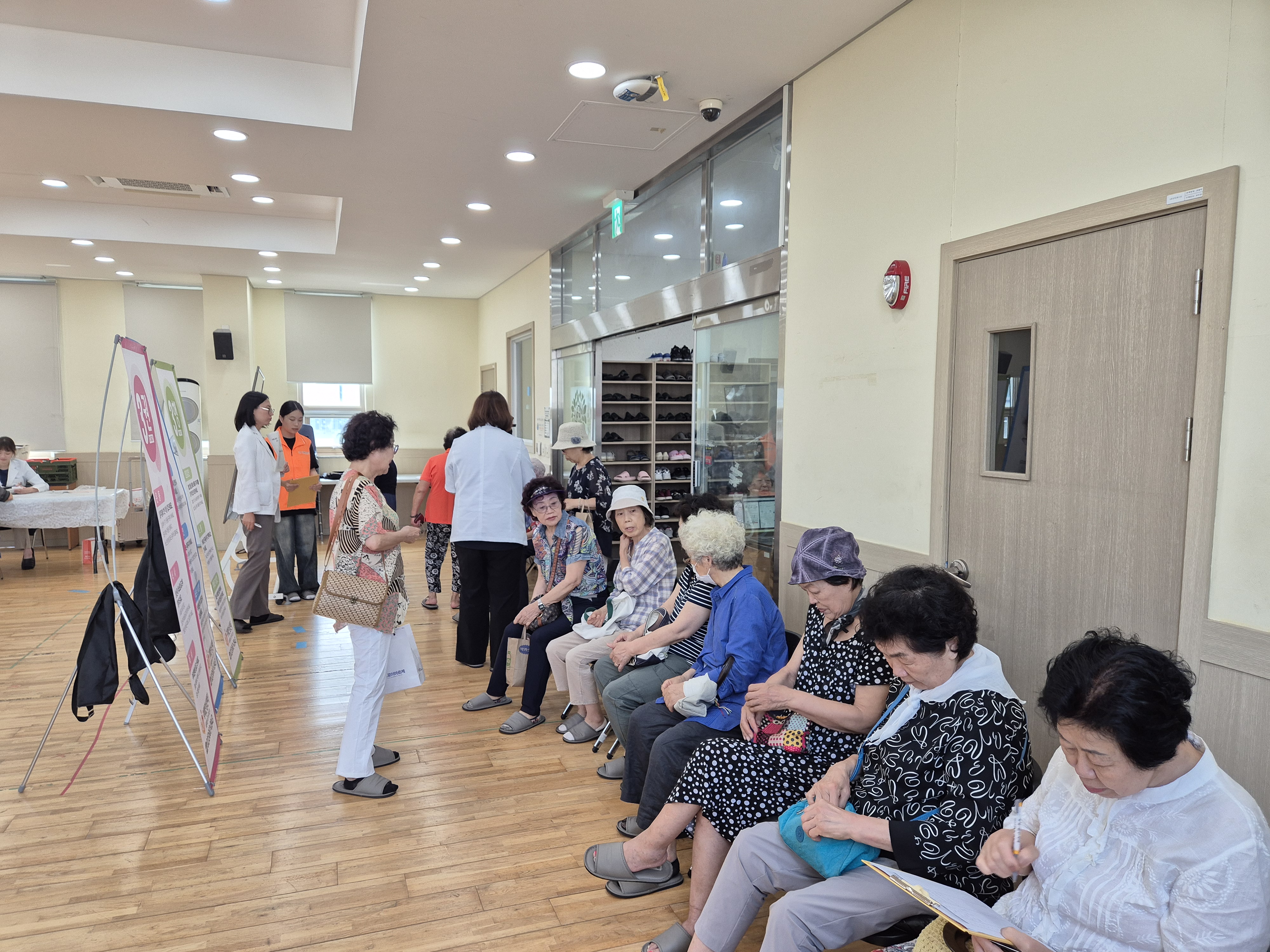 검진 당일 관리사무소에 방송을 한 번 더 요청했고, 경로식당 이용 어르신들께 다시 한번 홍보했습니다.