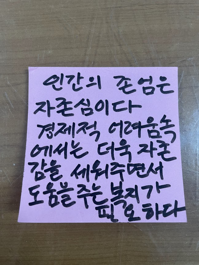 오늘 교육을 통해 인권, 인간의 존엄성에 대해 각자의 생각을 나눌 수 있어 참 좋았다고 말씀해 주셨습니다.