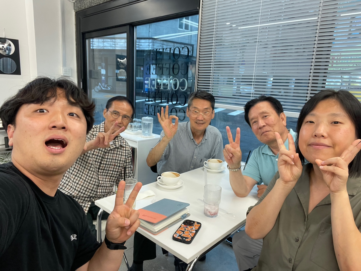 비를 뚫고 모임 장소인 공항동 주민센터에 도착했습니다. 김씨 아저씨께서 먼저 도착해 저와 권민지 과장님을 맞이해주셨습니다. 아직 도착하지 않은 참여자분들께도 연락을 돌리려는 찰나에 태씨 아저씨, 유씨 아저씨가 도착하셨습니다. 오씨 아저씨는 일정이 있으신지 오전부터 연락이 되지 않는 상황이었습니다. 우선은 모인 사람들끼리만 근처 카페로 장소를 옮겨 이야기 나누기로 했습니다.