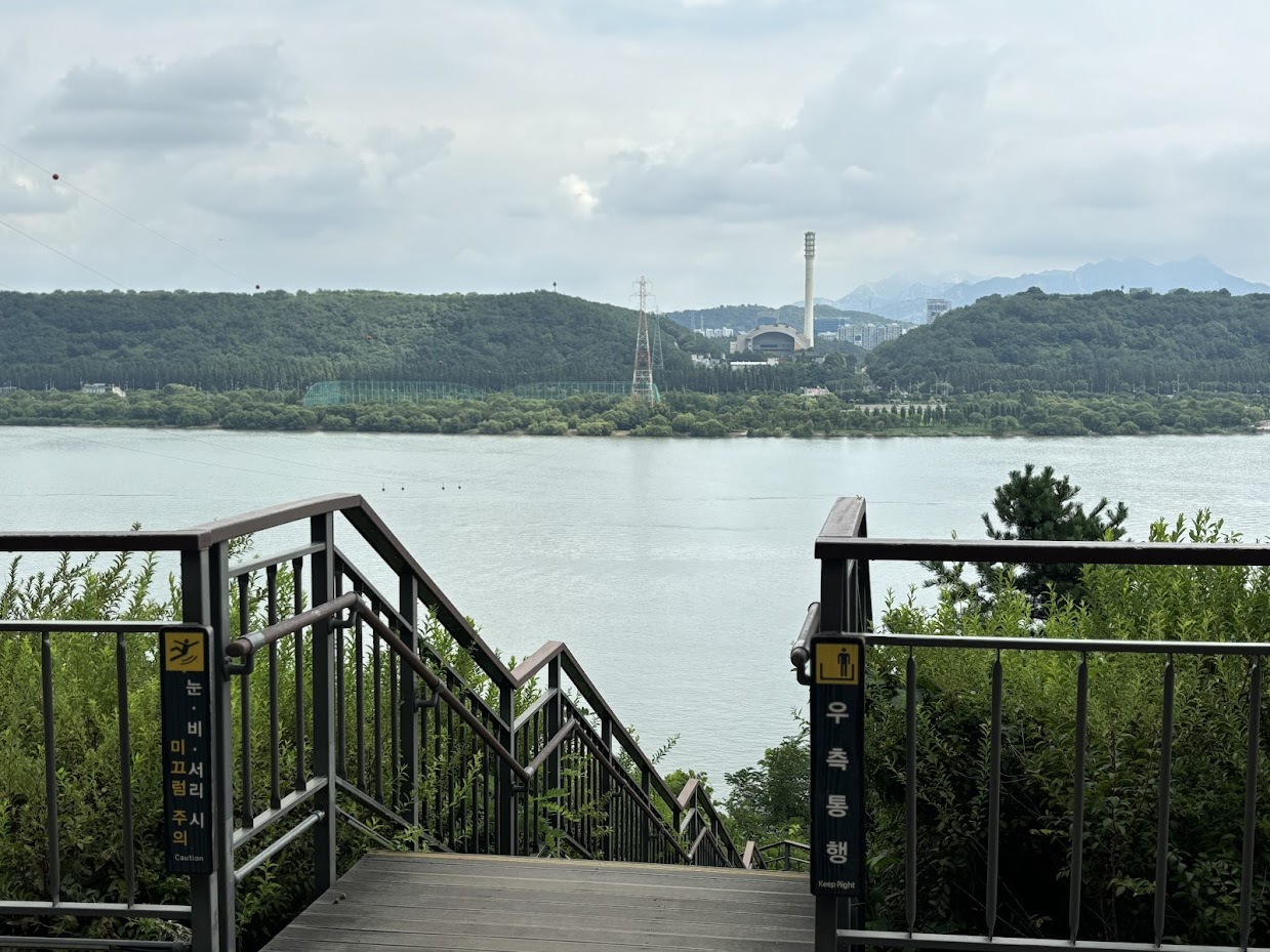 "다음에는 한강 공원을 가봅시다. 거기는 또 평지에 옆에 강이 쫙 펼쳐져 있어서 아주 좋아요."