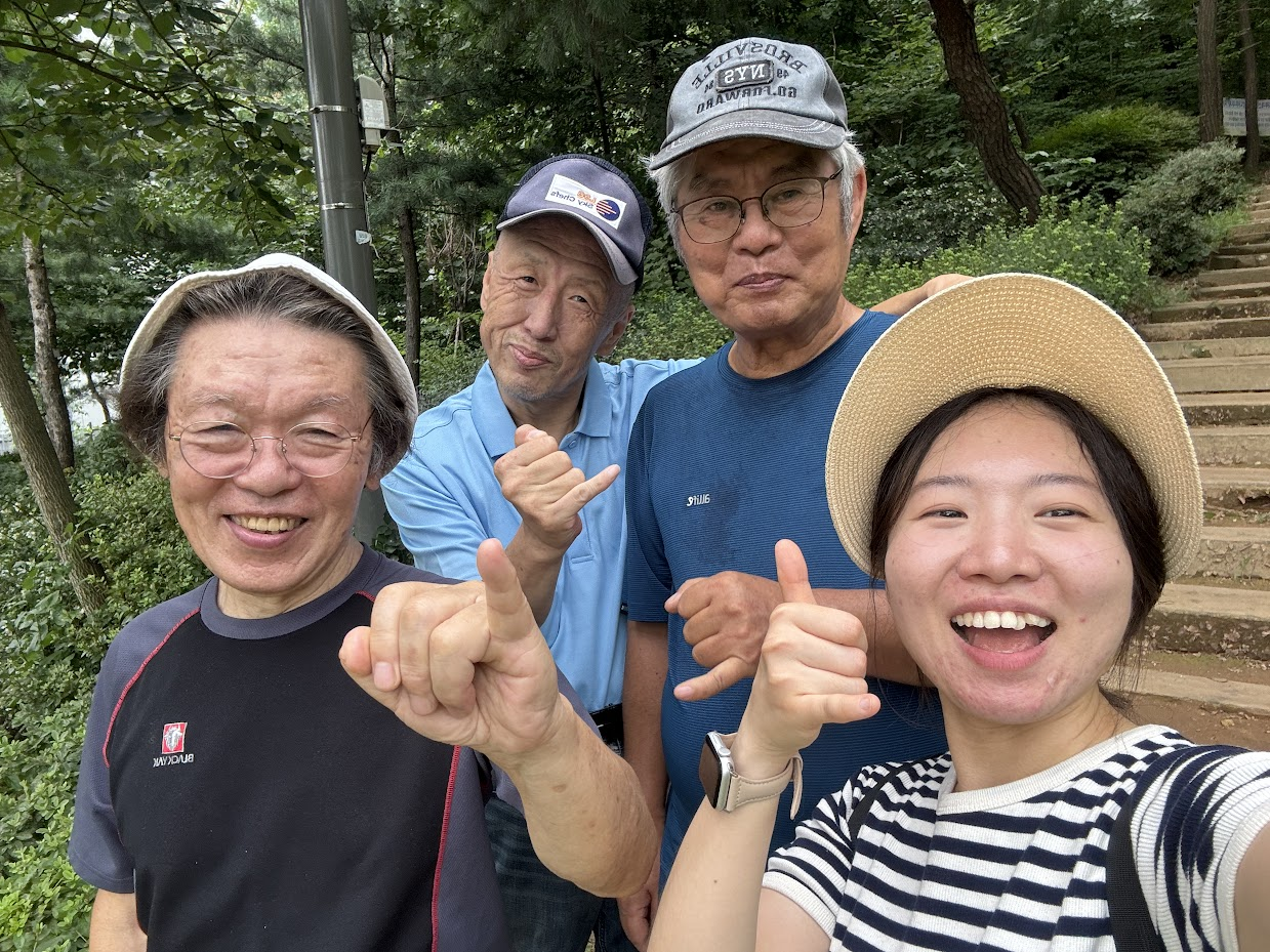 "이 씨 어르신!! 증미산 둘레길 가자고 하시는 말씀 듣길 너무 잘 한 것 같아요! 저랑 하이파이브 해요!! 완전 최고예요."