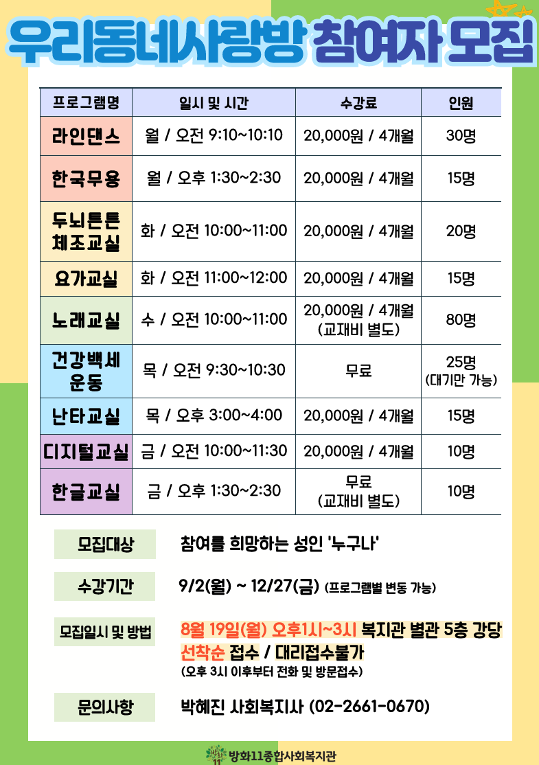 2024년 우리동네사랑방 하반기 수업 참여자를 모집합니다!