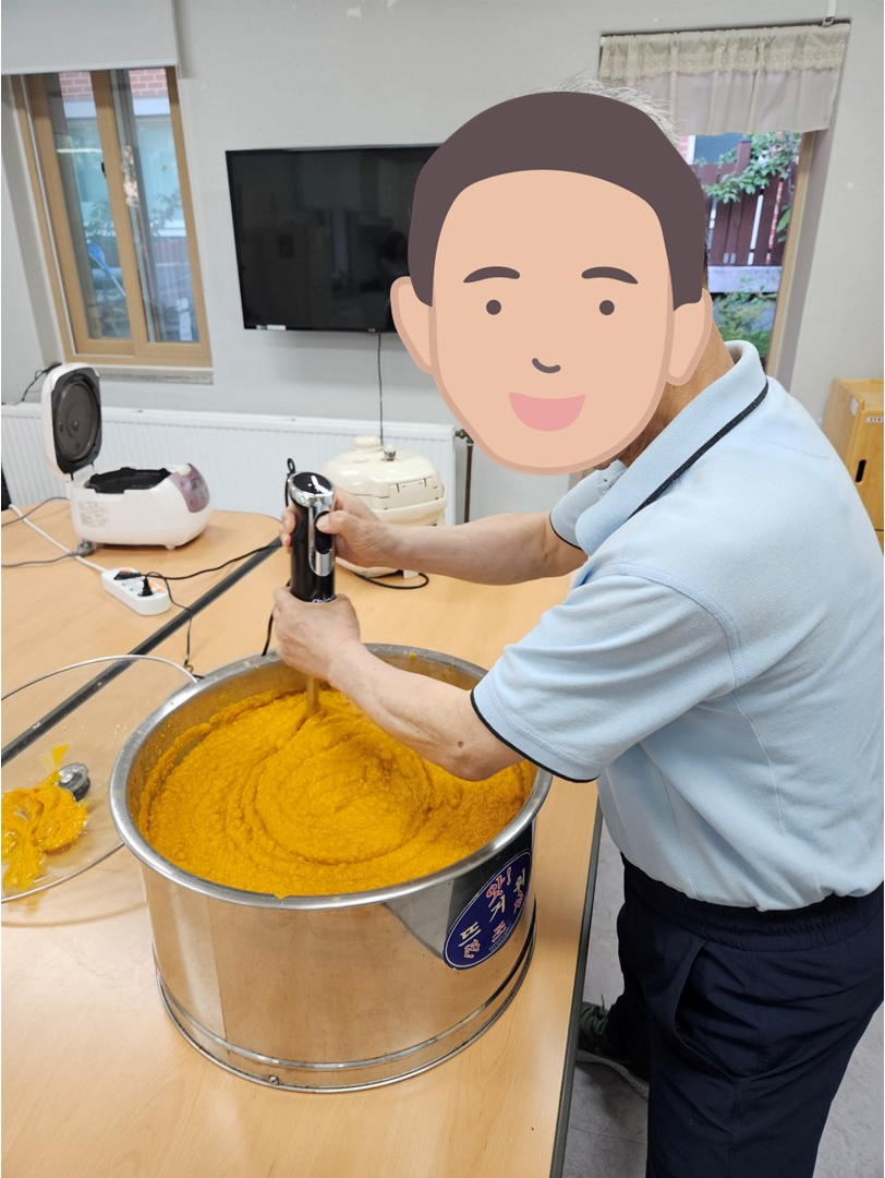 참여자들이 2일간 모여 함께 호박식혜를 만들기 위해 엿기름을 뽑고 호박을 삶았습니다.