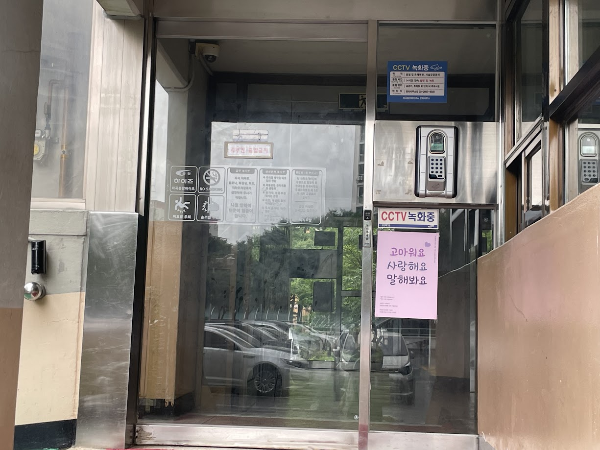 포스터를 부착하기 전, 마곡중앙하이츠아파트 관리사무소에 방문합니다.