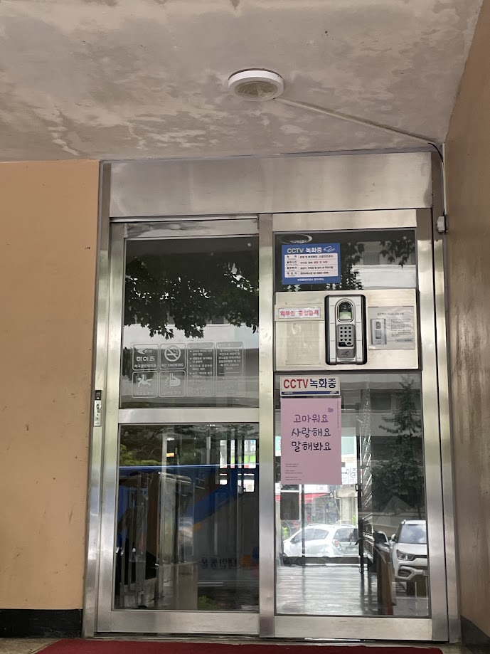 포스터를 부착하기 전, 마곡중앙하이츠아파트 관리사무소에 방문합니다.