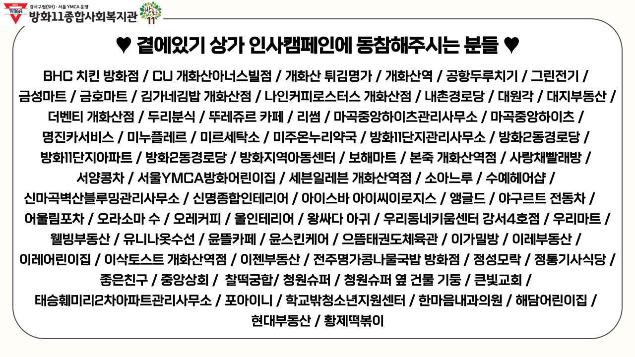 | [동네방네] 방화2동 아동청소년의 슬기로운 동네생활 3~6월 (0) | 2024.08.22 |